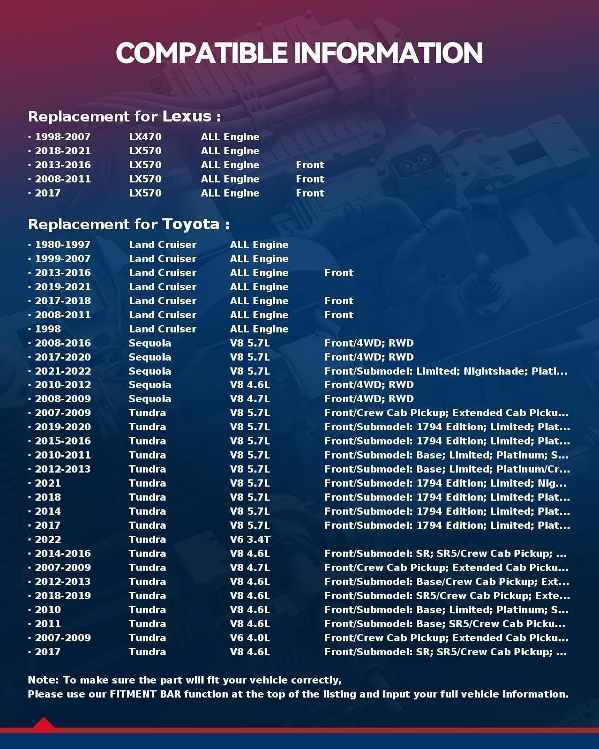| OEM Part Number | Tundra, Sequoia, Land Cruiser, |