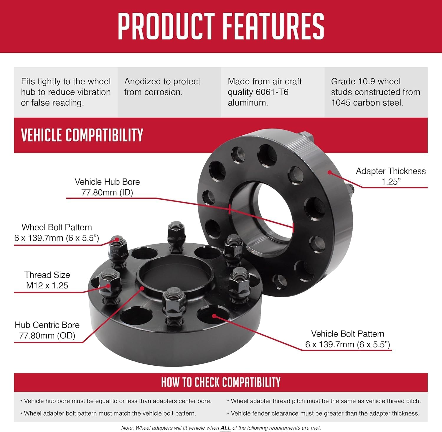 Wheel Accessories Parts 4 Pcs Hub Centric Wheel Spacers 6X5.50 6x139.7mm 2.00 Inch Thick 12mm 1.25 12x1.25 Thread Stud Fits Nissan TITAN (Non XD) | Nissan Armada | Infinit QX56 |