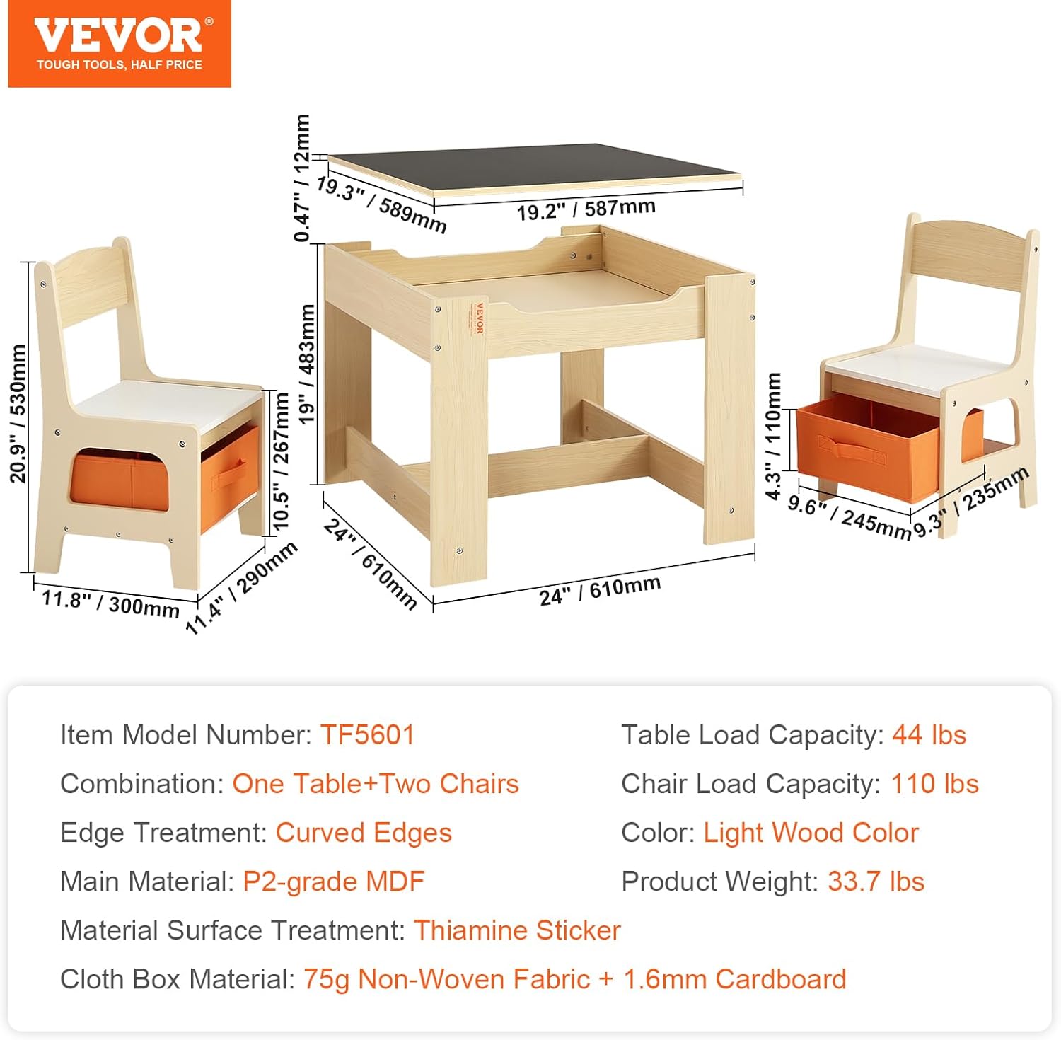 • Ample Storage Space: In addition to storage space under the tabletop, we've included storage boxes at the bottom of the chairs. These non-woven fabric-wrapped cardboard boxes enhance practicality without adding excessive weight. With large openings for easy access and organization, the vibrant color stimulates visual appeal and encourages good organizational habits.