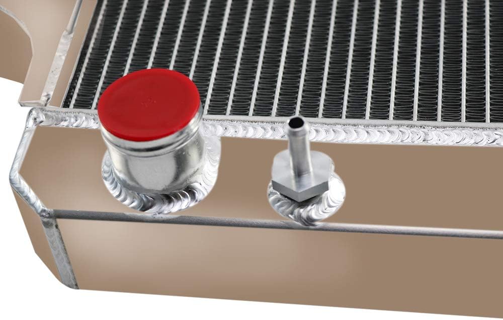 Radiator Size: Row: 4 Row Core Material: Full Aluminium Radiator Cap: included Core and Tank: All Aluminum Radiator Flow: DOWN FLOW Core Dimension (H x W): 18 1/2 x 20 Overall Dimension (H x W): 23 1/2 x 25 1/2 Hose Locations: IN: Passenger / OUT: Driver Hose Fittings: IN: 1 1/4 - OUT: 1 1/2 Trans Cooler: YES Mounting Type: BRACKET MOUNT Transmission: Automatic and Manual. Vehicle Fitment: For 1987- 2006 Jeep Wrangler YJ TJ 2.4L-4.2L For 1987- 2006 Jeep Wrangler YJ (2.4, 2.5,V4, 4.0, 4.2, V6) For 87-06 JEEP WRANGLER YJ/TJ 2.4L 2.5L 4.0L 4.2L For 87-06 JEEP WRANGLER YJ/TJ L4/L6