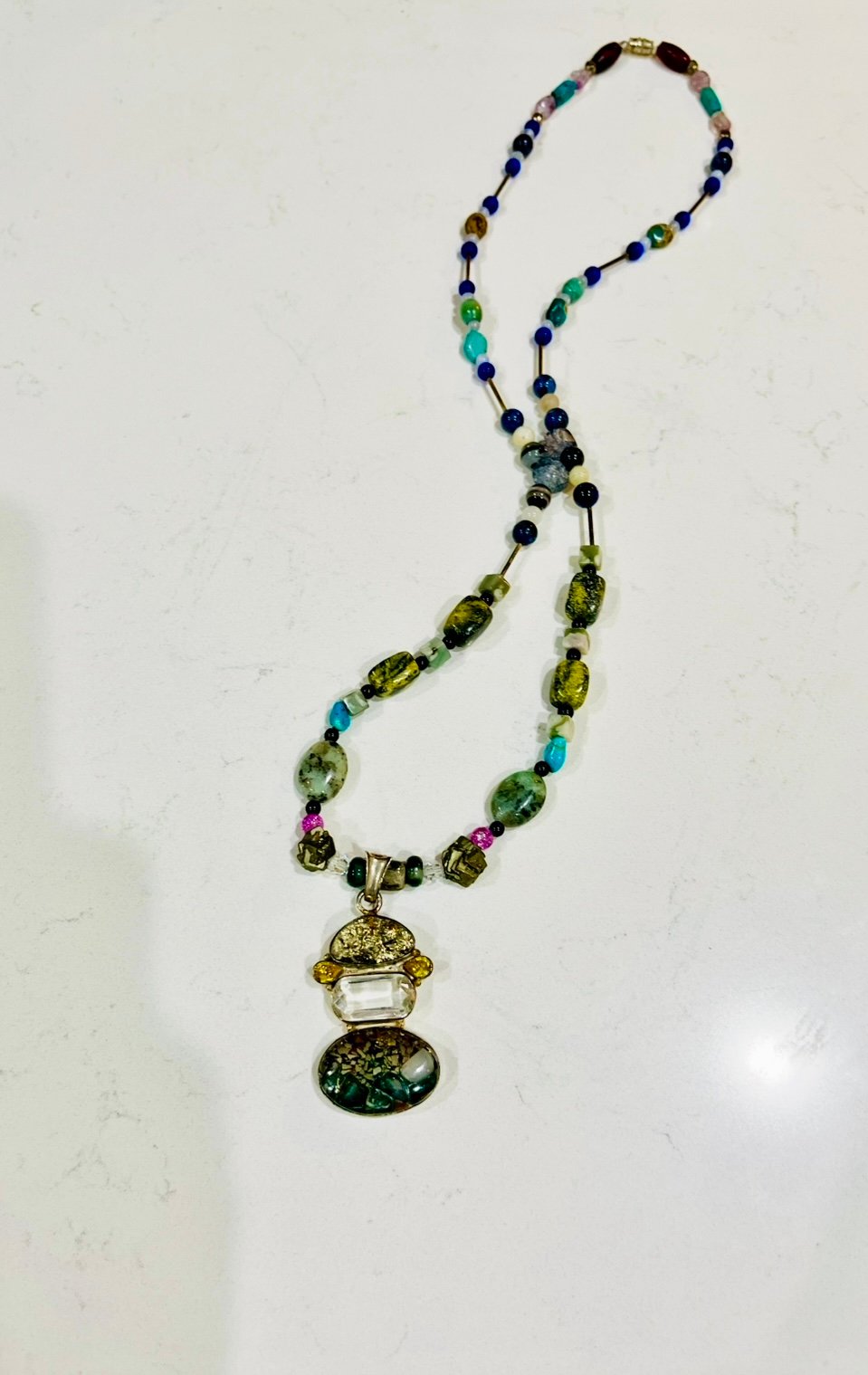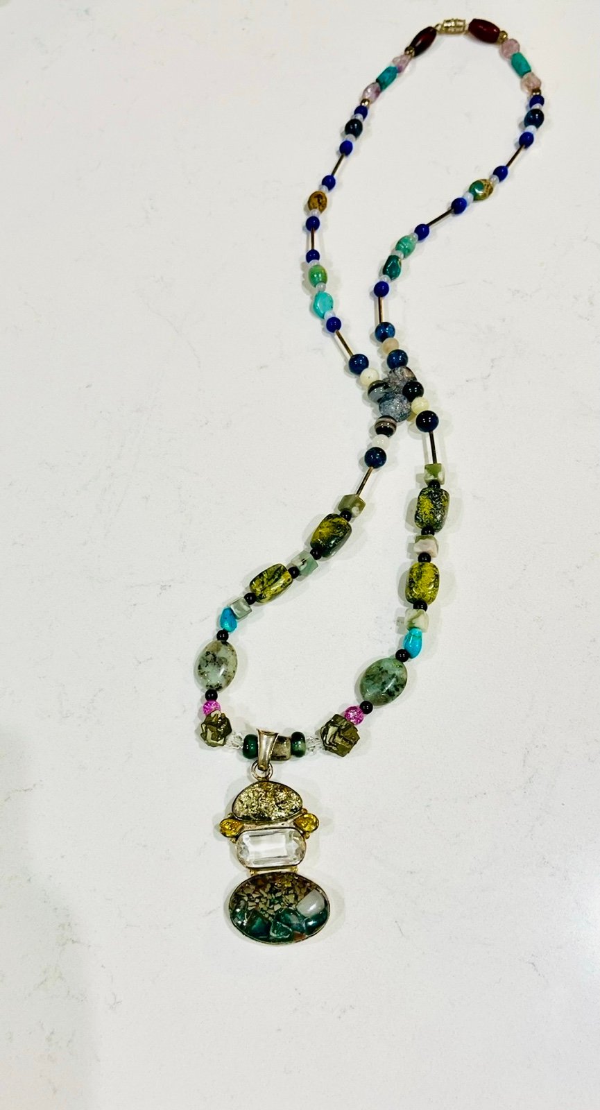RARE VTG Sterling Silver Multi Stone Pendant Necklace-OOAK-Eclectic Gemstone Mix