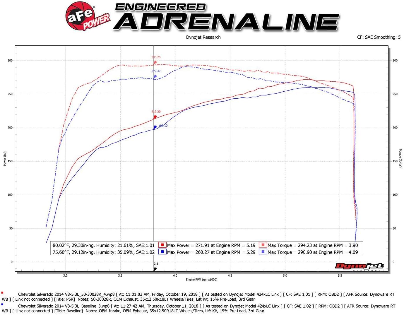 aFe POWER Momentum Cold Air Intake Systems redefine the sealed intake design with our patented intake tube, to filter, to housing interface that truly seals increasing cool, constant airflow for proven gains. This patented design simplifies installation by reducing part count to increase ease of installation. The large sight window allows for easy viewing of your filter without having to disassemble, offering an added convenience to an already sylish look.