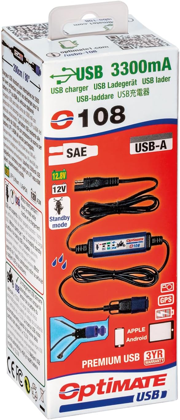 Charge your phone, GPS, camera & tablet with your weatherproof charger, on your motorcycle or up to 80″ / 200cm away from 12V supply.