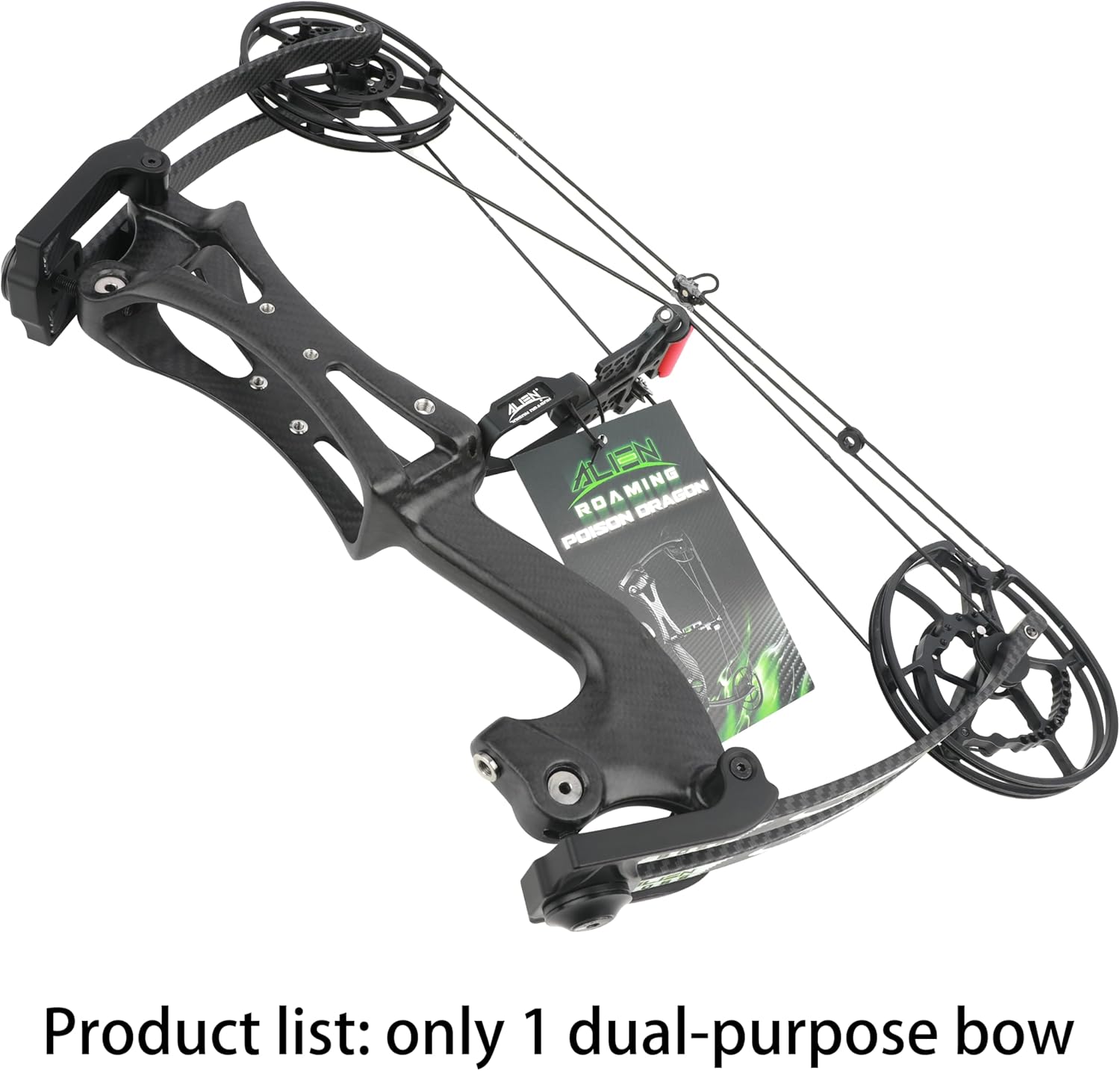 Product name :Dual Purpose Bow Left and right hand versatilit Axle-to-Axle: 20" Brace Height:8" Draw Weight: 30-70Lbs Draw length:24"-29" Let-off: 80% Steel Ball IBO Speed:426FPS(Steel ball size minimum applicable 12mm) Archery IBO Speed:340FPS . Bow body Material: One piece carbon fibre body Wheelset material: 7075 aerospace aluminium Bow limbs: American Gordon bow limbs Bow weight: 1570g .
