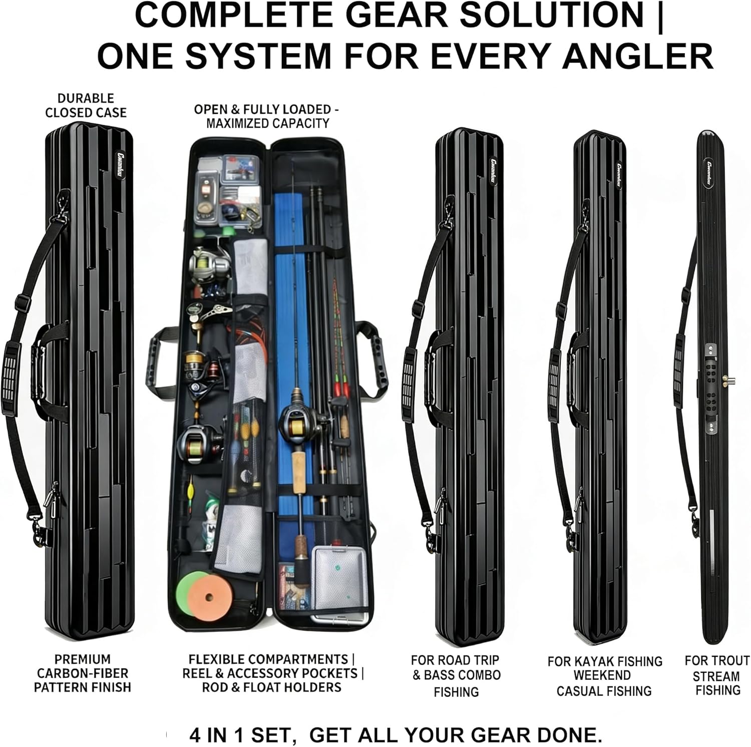 | Included Components | 4 x Adjustable Shoulder Straps, 4 x Hard Shell Fishing Rod Cased |