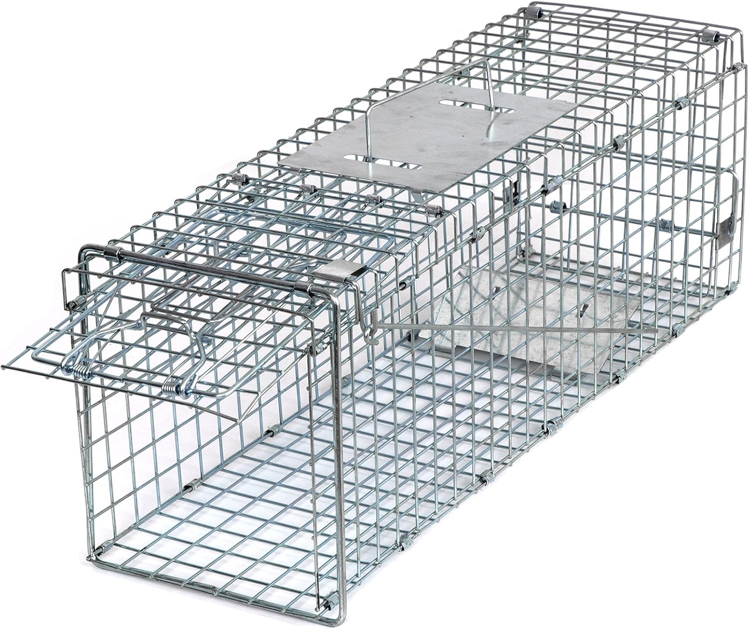 Features: Ideal trap for raccoons, possums, marmots and similar sized pesky animals.Smooth interior edges to protect and prevent harm to animals.Easy to use and easy to store.Simple to operate and easy to set up.Sturdy and durable material, ergonomic design to prevent harm to animals and users.Specifications:Dimensions: 32’’ x 12.5’’ x 12’’Weight: 9.3 lbsSurface Finish: Metal