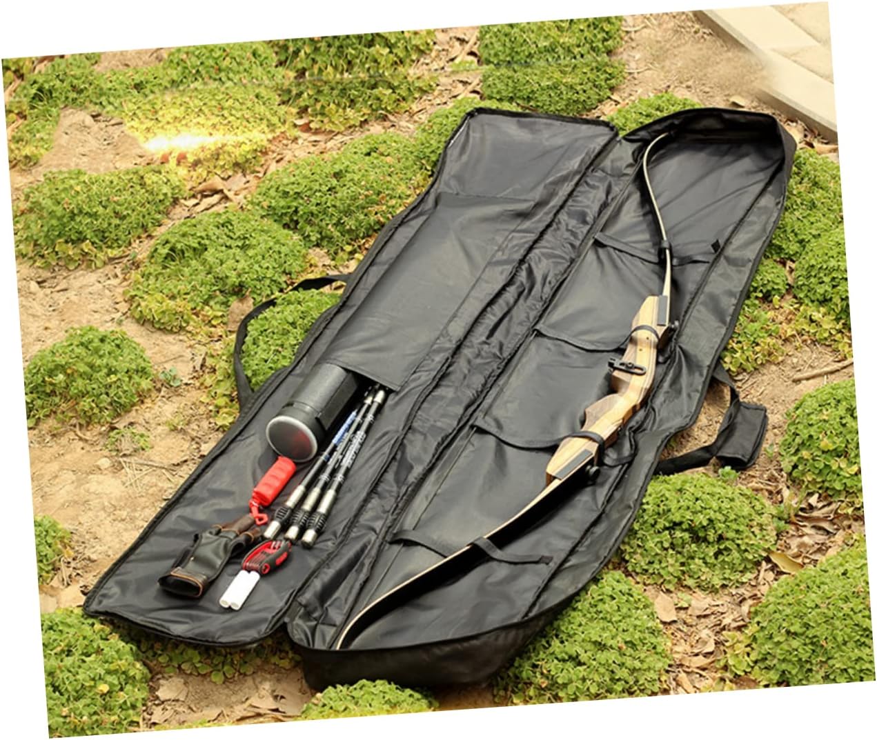 Package List 1 storage bag Characteristics - Size: About 170x 32 x 8cm recurve . - Color: Black camping bag. - Material: Canvas recurve case. - Inside strap design for keeping bow in place and hold tight recurve bag. - workmanship canvas tote bag, comfortable for you to carry. Washable and practical hunting tote bag. - Detail cares design make it not easy to fade. Anti-wear and practical outdoor hunting bag. - Hands tote or shoulder bag use, fashion and creative backpack . - Designed for recurve bow accessories storage use longbow bag.Goods Informationrecurve bag Large capacity and light weight ensures its wide application.backpack This item is a canvas material handbag for recurve bow arrow accessories storage use.recurve , multifunctional and portable, which will highlight your unique charisma