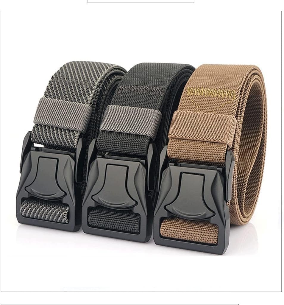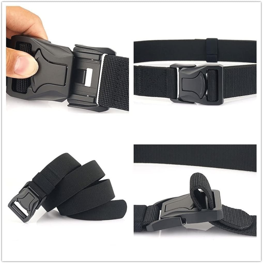 Hello, welcome! Welcome to my shop!Men Quick Release Metal Pluggable Buckle Elastic Tactical Belt Durable Battle Belt Cowboy Outdoor Overalls .Made of nylon material with belt buckle soft and comfortable for daily use.Quick release solid buckle and wide heavy duty webbing make this belt durable to use in outdoor activities.Hole-less belt means you can adjust the length freely.The buckle is non-slip no need to repeated tight non-friction to the belt.Material: Polyester(Nylon)Buckle size: 4.8cm * 6.5cmBelt width: 3.8cm Style: Fashion formal novelty casual businessBelt lenght: (125cm)Please choose the right size The belt can be modified according to your waist .Weight:0.25kgPackage: only 1 belt Notice:1. Due to manual measurement please allow 2-3% error.Before you bid make sure you don't mind.2. The color may vary due to different monitors please refer to the actual product.Due to different lighting and screen settings the color of the item may be slightly different from the picture.Please allow for slight size differences due to manual measurements.Package includes main product onlyI wish you a happy life!
