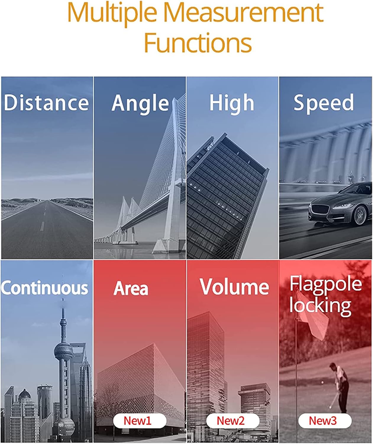 To better enjoy the pleasure of golf, you cannot miss this good helper - the golf laser range finder. The golf range finder is compact and lightweight and has a multi-function color LCD touch screen and multiple measurement models (distance / angles / speed), you will easily get accurate data and enjoy the fun of golf. Characteristics: model: SW-800B / 1000B / 1500B Measuring range: 800m / 1000m / 1500m Speed measurement: 0-300km / h (vertical measurement error 5km / h) Indication error: +/- (1.0m + D * 0.2%) Protection level: IP54 Data storage: 30 items Angle measurement: +/- 90 Telescope magnification: (6.0 +/- 5%) X Lens aperture: 23.7mm Eyepiece opening: 15mm Field of view: 6.00 +/- 10% Diopter adjustment: +/- 6 diopters Power supply: 750mAh lithium battery Package List: 1 x golf range finder 1 x bag 1 x user manual