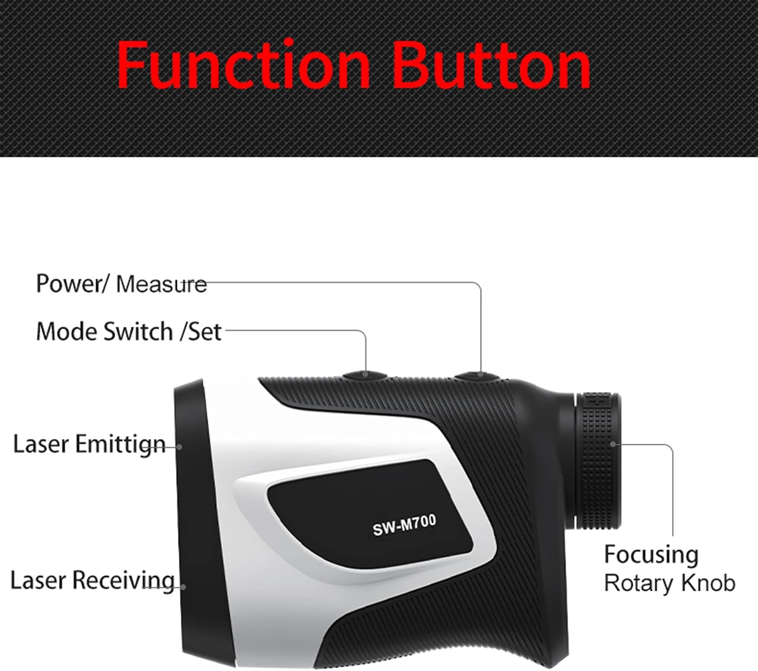 Telescope range finder is an instrument based on pulsed laser ranging principle. It has a wide measuring range and is suitable for outdoor remote measurement. It can be used in a variety of scenarios, such as golf, engineering surveying, positioning cranes, position control, and measuring objects, which are not suitable for access. It has the following characteristics: 1. Golf trajectory compensation 2. Auto power off 3. Fast measurement 4. Flagpole lock function 5. 6X magnification 6. Laser power class 1, safe to eyes 7. Vertical and horizontal distance mode for more complex measurement in construction Specification: Unit: m(Meter), Y(Yard) Measurement response time: <0.5s (<120M 64ms; ≥ 120M 460ms) Telescope magnification: 6X±5% Field of view: 7.0°±5% Objective lens aperture: 19mm Eyepiece aperture: 15mm Exit pupil diameter: 3.7mm Diopter adjustment range: +6° diopter Laser class: Class 1 Laser wavelength: 905nm Power supply: 3.7V/ 750mAh Li-ion Protection level: lP54 Working temperature: -10°C~50°C Height measurement function: Yes Slope measurement function: Yes USB interface: USB Type-C
