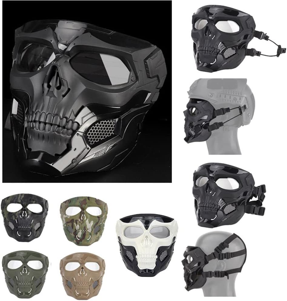 Outdoor Paintball Shooting Face Protection Gear Tactical Fast Helmet Wing Rail Side Rail Clip Buckle Mount Skull Mask with Head Band