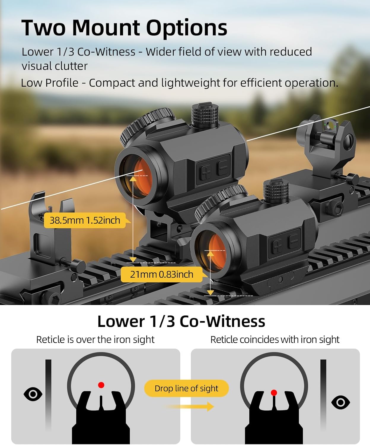 | Mounting Type | Picatinny Mount, Lower 1/3 Co-Witness Mount |