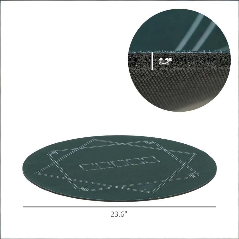 Transform any table into a professional poker playing surface with this premium round game mat. Measuring 23.6 inches in diameter, this dark green felt-surfaced mat provides the perfect playing area for up to 4 players. The high-quality rubber backing features an anti-slip design that keeps the mat firmly in place during intense gaming sessions, while the water-resistant surface protects against accidental spills and makes cleanup a breeze. At just 0.2 inches thick and 2 pounds in weight, this mat offers the ideal balance of durability and portability. When game night is over, simply roll it up and store it in the included carry bag for easy transport and storage. The elegant geometric pattern printed on the felt surface adds a sophisticated touch while helping players position their cards. Whether you're hosting regular poker nights or looking for a versatile gaming surface, this table mat delivers professional-grade quality and convenience in one portable package.