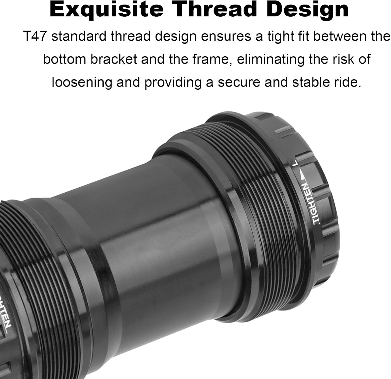Product Description:This bottom bracket assembly provides reliable crankset support for various bicycle frames through its durable aluminum alloy construction. The T47 threaded interface ensures secure frame engagement while maintaining proper alignment for smooth pedal rotation. With clear directional markings and standardized dimensions, this road bike bottom bracket simplifies installation procedures for home mechanics. The lightweight design reduces overall bicycle weight without compromising structural integrity during demanding rides. Compatible with both road and mountain bike configurations, this component accommodates standard spindle sizes for versatile application across different cycling disciplines. Sealed bearing units within the housing provide consistent performance while protecting internal components from environmental elements.Specification:Item Type: T47 Bottom Bracket for Road Mountain Bike 24mm Five-way HollowStructure: Aluminum AlloyInternal Type: Width 86mmExternal Type: Width 68-73mmCompatible with 24mm, Threaded TypeApplication: for Various Brands and TypesItem Weight: Approx. 130g/4.59ozPackage List:1 x Bottom Bracket