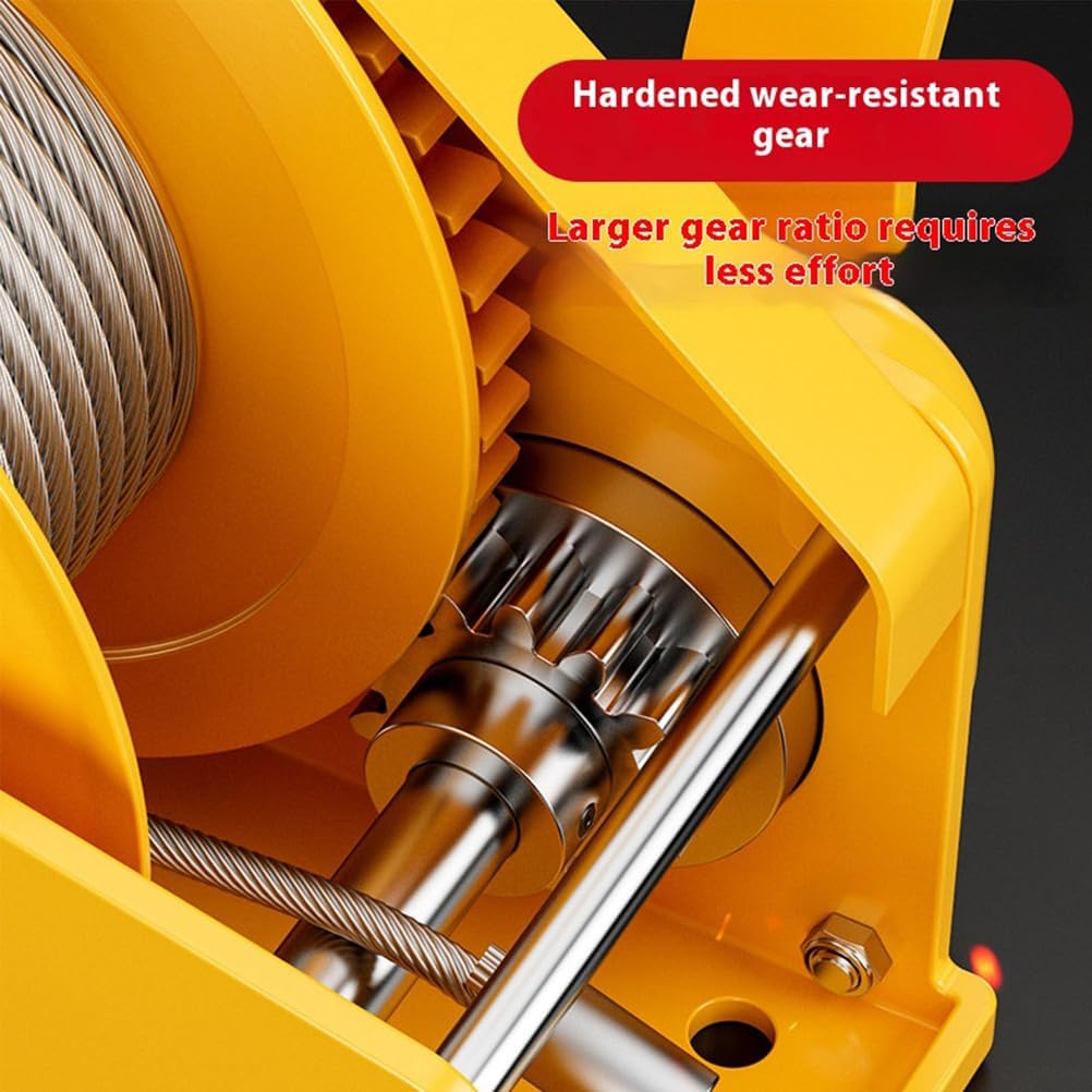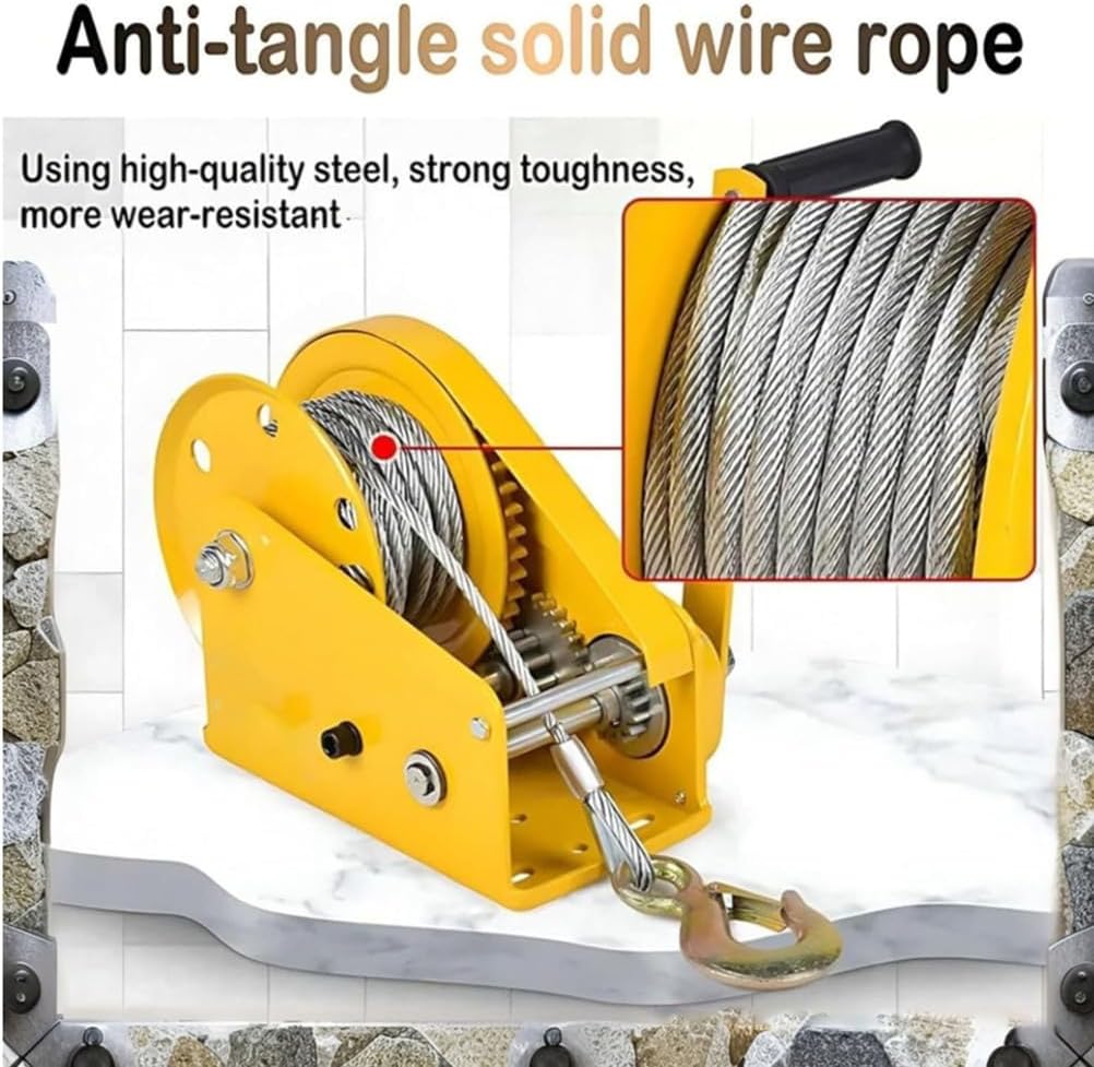 1800 pounds Small Hand Winches, Sturdy Steel Two-Way Ratchet Manual Crank Winch for Construction, Farm, Ranch, Dock and Boat Trailer ? Product specifications Motor power: manual Type: Hand cranked winch Model and specification: 1800 pounds Lifting speed: 6m/min Hook: 0.5t ring eye Speed ratio: 4:1 Wire rope length: 5-30m Steel wire diameter: 5mm Wheel diameter: 180mm Installation hole: 10mm Cable lift: 5mm * 30m Parallel traction: 800kg Vertical traction: 350kg Net weight of bare machine: 8kg ? You will receive Hand cranked winch * 1 Instruction manual * 1