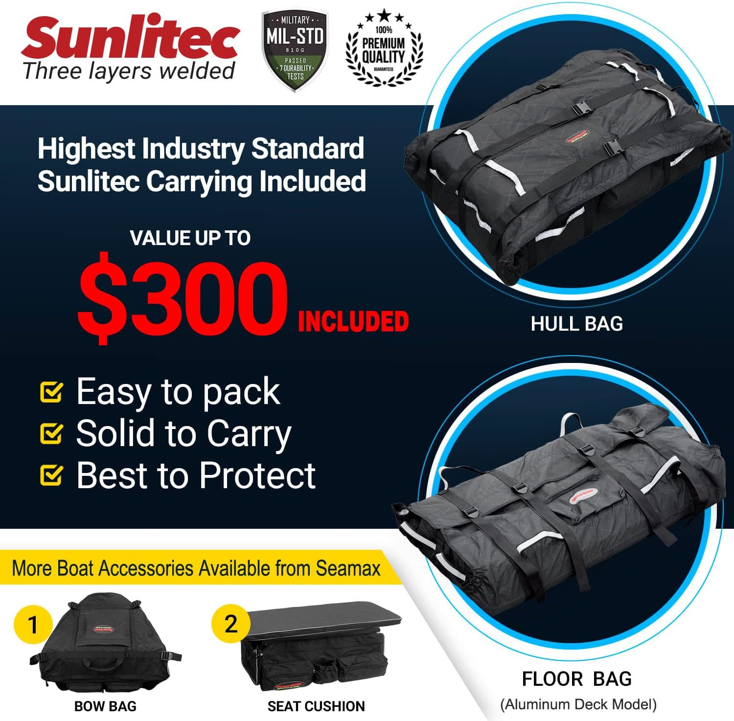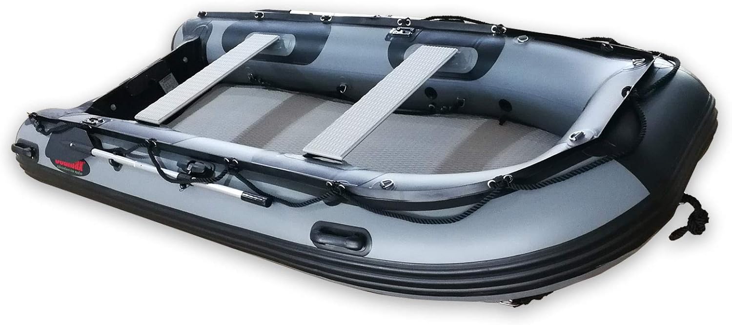 Seamax Recreational 10.8 Feet Inflatable Boat with High Pressure Airmat Floor Easy to Roll up,Max 4 Passengers and 15HP Rated-Dark Grey