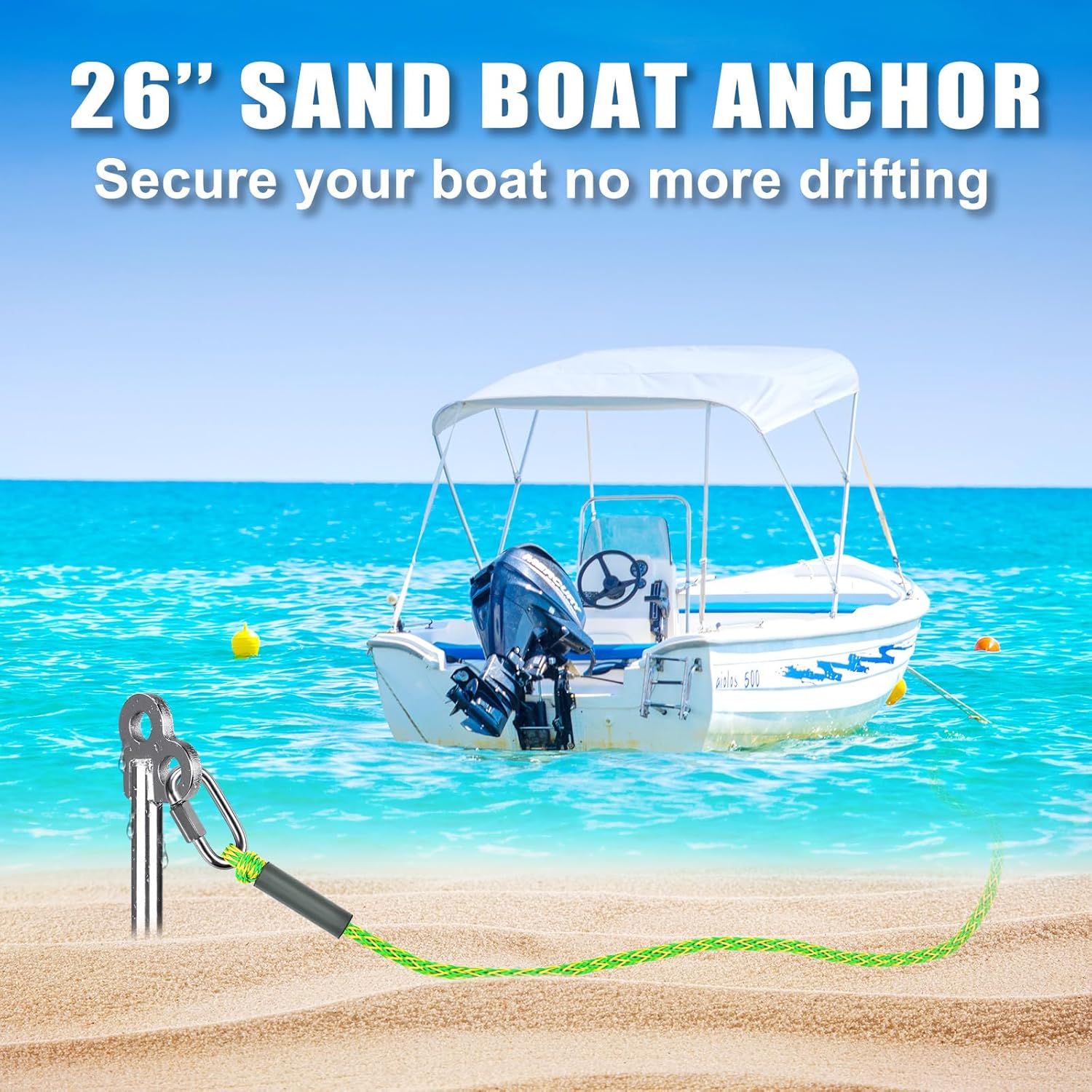 SELEWARE Sand Anchor for Boats, Screw in Boat Anchor for Shallow Water, Jet Ski Anchor, Stainless Steel Boat Beach Anchor for Securing Pontoon Boats, Jet Skis, Kayaks on Beaches and Sandbars