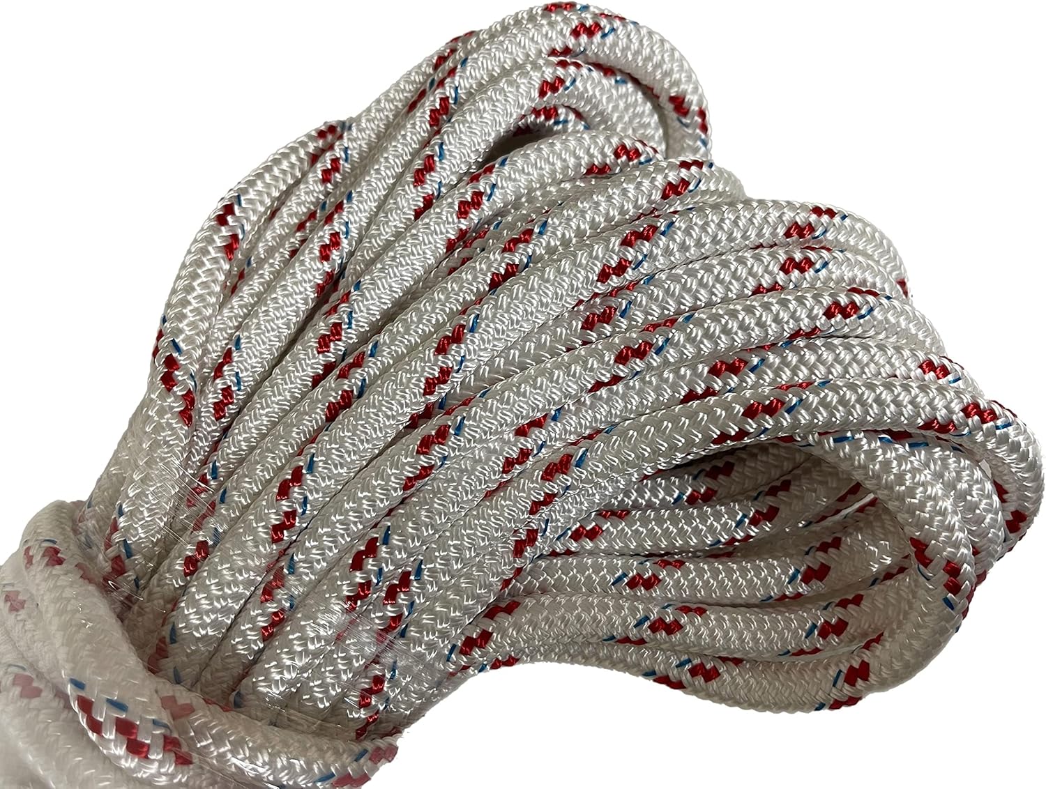 This 7/16-inch Premium Double Braid (Yacht Braid) Polyester Rope from Blue Ox Rope delivers exceptional strength, flexibility, and durability for marine and general-purpose applications. The white rope with red tracers and a blue fleck offers a classic, high-visibility look. Available in 50 ft, 100 ft, 150 ft, or 300 ft lengths, this rope provides an average tensile strength of 6,300 lbs and features a smooth, tightly braided construction for excellent handling and abrasion resistance. Ideal for halyards, control lines, rigging, and other marine or utility uses. It’s also widely used in the equine industry as horse reins, lead lines, or training ropes. Proudly Made in the USA. Rope is not spliced.