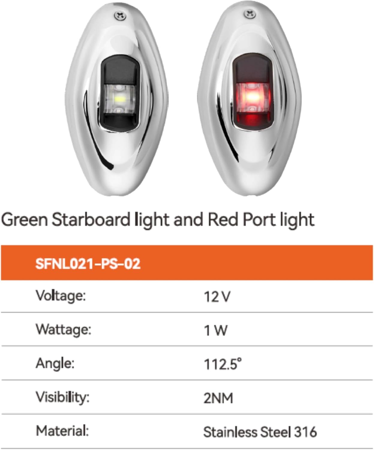 | Included Components | 1 Green Starboard Light, 1 Red Port Light |