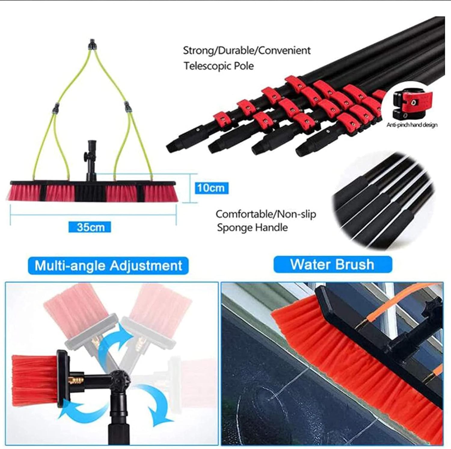 • 【Wide Range Of Applications】: Suitable For High-Place Window Cleaning, Solar Photovoltaic Panel Cleaning, Cleaning Cars, Trucks, Vans, Caravans, Windows, Greenhouses, Boats, Decks, Etc. The Anti-Fracture Joint Design Can Be Used With Various Cleaning Tools To Complete High-Level Cleaning Operations.