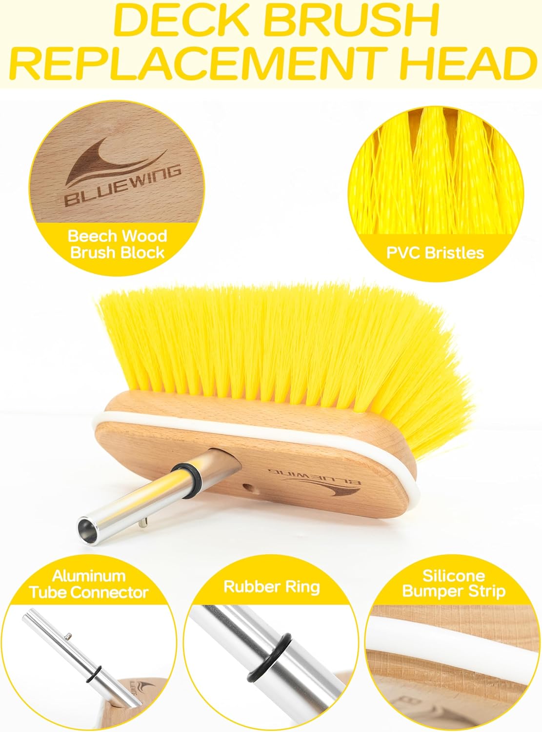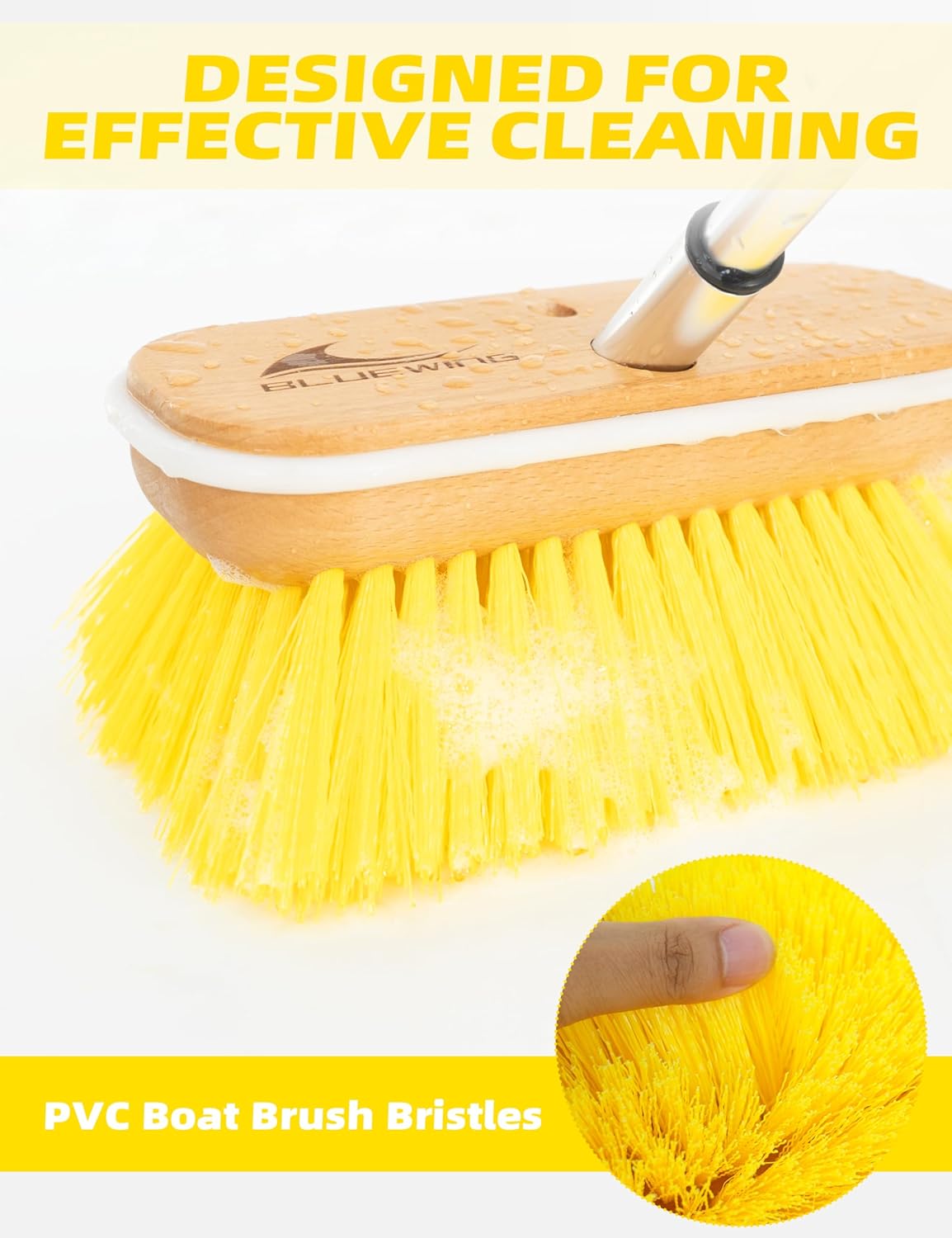 BLUEWING 8in Deck Brush Head with Soft/Medium/Hard Bristle Marine Scrubbing Washing Brush Outdoor Boat Cleaning Brush Tools