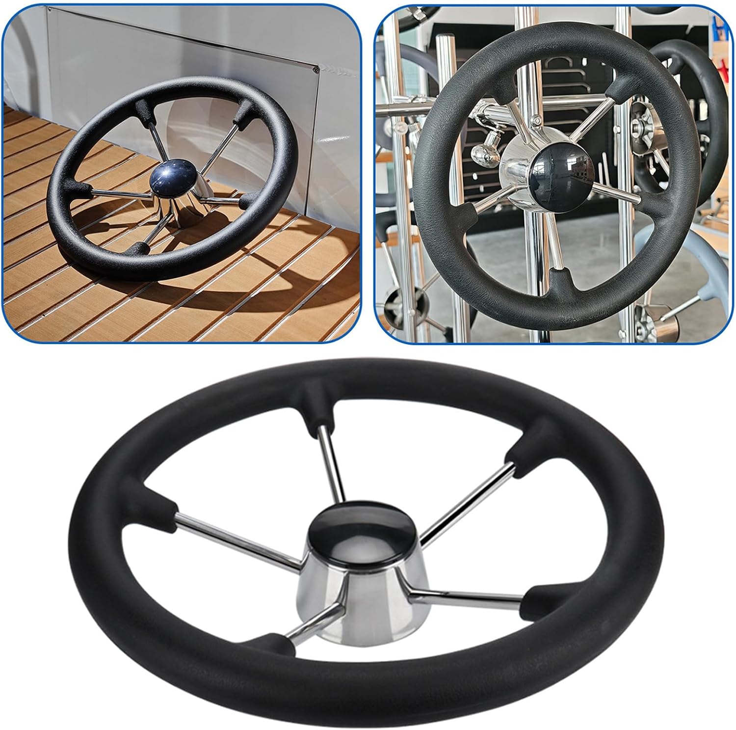 13.5in 5 Spoke Boat Destroyer with Black Foam Stainless Steel for Marine Yacht Easy Setup Features: This marine features a standard 13.5 inch size, crafted to improve handling accuracy Works well with various boat types including yachts, speedboats, and fishing vessels, responsive steering and smooth movement during navigation Built from premium 304 stainless steel, this wheel shows strong resistance to rust in saltwater conditions Preserves sturdiness and look under challenging marine settings while reducing maintenance needs The padded foam handle provides excellent comfort, lowering hand fatigue by around 30% compared to hard handles Great for long trips or active water sports, ensuring pleasant use over many hours Designed with standard attachment points for simple installation without requiring special gear Usually takes just minutes to put together, allowing fast replacements and upkeep when needed Fits well with multiple vessel types such as yachts, speedboats, and fishing boats Whether for leisure cruising or professional activities, this maintains stable function across all water based uses Specifications: Component: Stainless Steel Diameter: 35cm / 13.5in Package Includes: 1pc Boat Destroyer Note: Please allow 1-2cm errors due to manual measurement, make sure that you do not mind before you order Due to the difference between different monitors, the picture may not reflect the actual color of the item