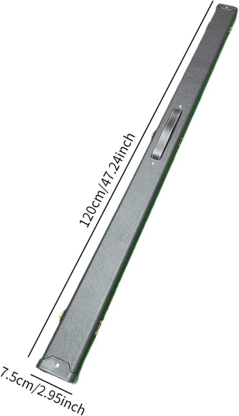 Description: - 【Reliable Material】: This pool cue case is made of reliable PU material, wear resistant, and long using time. Size: 120 cmx7.5 cmx4.5 cm/47.24 inchx2.95 inchx1.77 inch - 【Convenient Design】: The pool cue case is designed for 3/4 pool cue, and features a handle for easy carrying, making it great for taking your cues on the go - 【Billiard Pool Cue Protection】: The Billiard Pool Cue Case protects cues from bumps and scratches. The interior of the case is lined with foam to provide better protection for your cues during transport - 【Sturdy Construction】: This billiard pool cue stick carrying case is sturdy and reliable. A great accessory for the billiard cue, a great gift for billiard lovers - 【Great Gift】: This billiard cue storage box is also a wonderful gift choice for families and friends who like playing billiards. Please note that this product is an empty box and does not include any accessories or cue sticksSpecification: - Material: PUSize Chart:120cmx7.5cmx4.5cm/47.24inchx2.95inchx1.77inchPackage Includes:1 Billiard Cue CaseNote:Please allow slightly errors 1-2cm differences due to manual measurement.