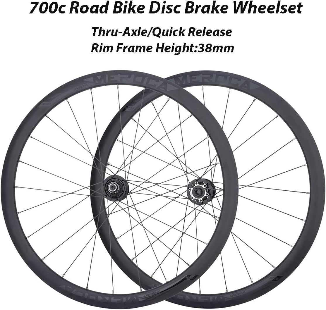 Introduction to the wheel groupProduct Name: 700C Disc Brake Road WheelsetInstallation: Quick release/thru axle.Material: Aluminum alloy.Hub: 2 front bearings, 4 rear.Rim frame height: 38mm.External width: 21.5 mm.Internal width: 18 mm.Freewheel: 7075 aluminum alloy.Spokes: Front and rear 24 holes.Support: 8/9/10/11 speedValve: Presta valve.Brake: Six-point disc brake.Net weight of the wheelset- Quick version.Single front wheel: approx. 1070g.Single rear wheel: approx. 1170g.Quick release lever: about 110g- Project with rotary axis.Single front wheel: approx. 1065g.Single rear wheel: approx. 1165g.Open gear size- Quick release: front 100mm, rear 135mm.- Hub: 12 x 100mm front hub, 12 x 142mm rear hub.Package Included:- QR (quick release).1 x Bicycle Front Wheel.1 x Bicycle Rear Wheel.1 quick release lever.1 x spacer.- Through1 x Bicycle Front Wheel.1 x Bicycle Rear Wheel