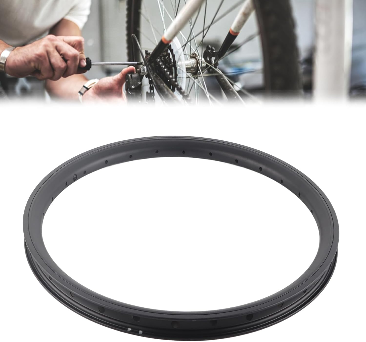 Features 1、Made of the aluminum alloy material, sturdy, has a long service life. 2、The rims adopts an asymmetrical design, so that the rims distributes tension evenly without sinking. 3、The wheels can be assembled faster with this product, high performance, a good replacement. 4、Suitable for bikes with 20‑inch wheels and suitable for 20x1.5 and 20x1.75 tire type. 5、It can be installed with 28 spokes, thicken rims, universal for bikes and electric vehicles.Specification Item Type: 28 Holes RimsMaterial: Aluminum AlloyColor: Silver BlackSpecification: 20inOuter Diameter: Approx. 41.8cm/16.5inInner Diameter: Approx. 37cm/14.6inHeight: Approx. 2.5cm/1.0inWeight: Approx. 386.0g/13.6ozNumber of Holes: 28 holesSuitable for bike 20x1.5 and 20x1.75 tireSuitable for bike with 20‑inch wheelsPackage List 1 x 28 Holes RimsNote:Please allow 1‑2cm/0.4‑0.8in error due to manual measurement. Thanks for your understanding.28 holes means need 28 spokes.Look at the tire model first, then count the spokes.This rims is thickened rims. Universal for bikes and electric vehicles.The length of the spoke is determined by the rims, hub, and weaving method (the length can be multiple), so if it is not suitable for the original spoke, you can adjust it through the weaving method. If not, you can only buy a new spoke.