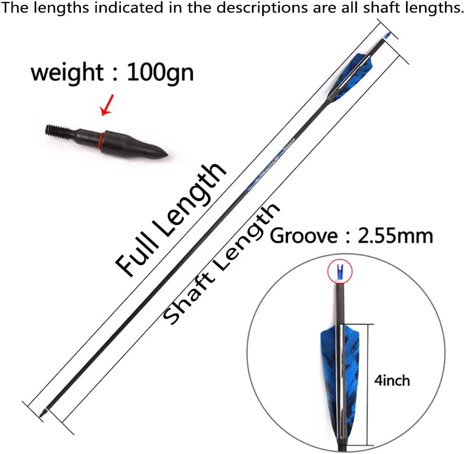 Inner Diameter 6.2mm .244" Carbon Arrow for Indoor Outdoor Target Practice and HuntingPersonal Customization Choose CUSTOM when you need other spine.Technical Specification Material: 100% pure carbon fiber tube Straightness: +/-0.006" Spine: 300 350 400 500 600 700 800 Max Shaft Length: 31inches Arrowhead: replaceable field tip Fletching: 4" shield turkey feathers, 2 grey 1 white Nock: plastic nock with aluminum pin Color: black shaft with gold logo and grey feathers Package: 12pc carbon arrows"PPP" Features Precision: the strict production process makes these arrows up to the standard of competition arrows, making your archery more accurate and easy. Protective: the reasonable arrow weight can also reduce the energy transfer to the bow while ensuring the maximum initial speed. Purposeful: the combination of accessories makes them perfect for indoor outdoor training and shooting.Note All items are NOT toys, please keep away from kids.