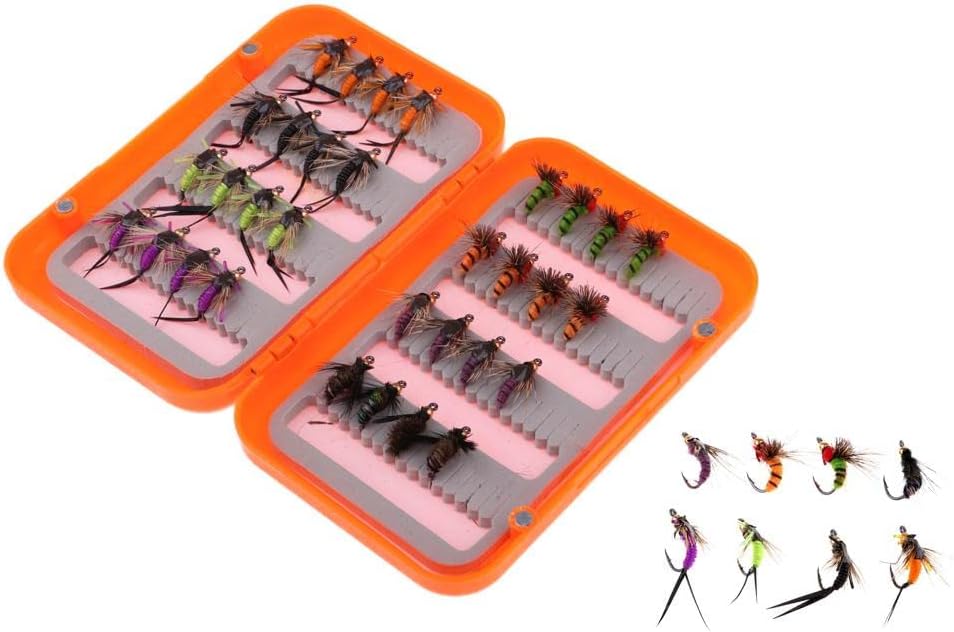 Description: - Artificial feather with carbon steel design, beautiful and natural. - The bead head adds to the attraction as well as getting the flies down faster in the water. - They can imitate immature dragonflies, mayflies, caddis nymphs and damselflies. - Fishing flies allows the option of fishing in various conditions. - Excellent trout, bass, salmon or steelhead flies.Specification: - Material: Artificial Feather, Metal - Box Size: approx.11.5x7.5cm / 4.5x3.0inch - Hook Length: approx.1.5cm / 0.59inch - Hook Size: 8#Package Includes:40 Pieces Fly Fishing Flies1 Piece Fly Box