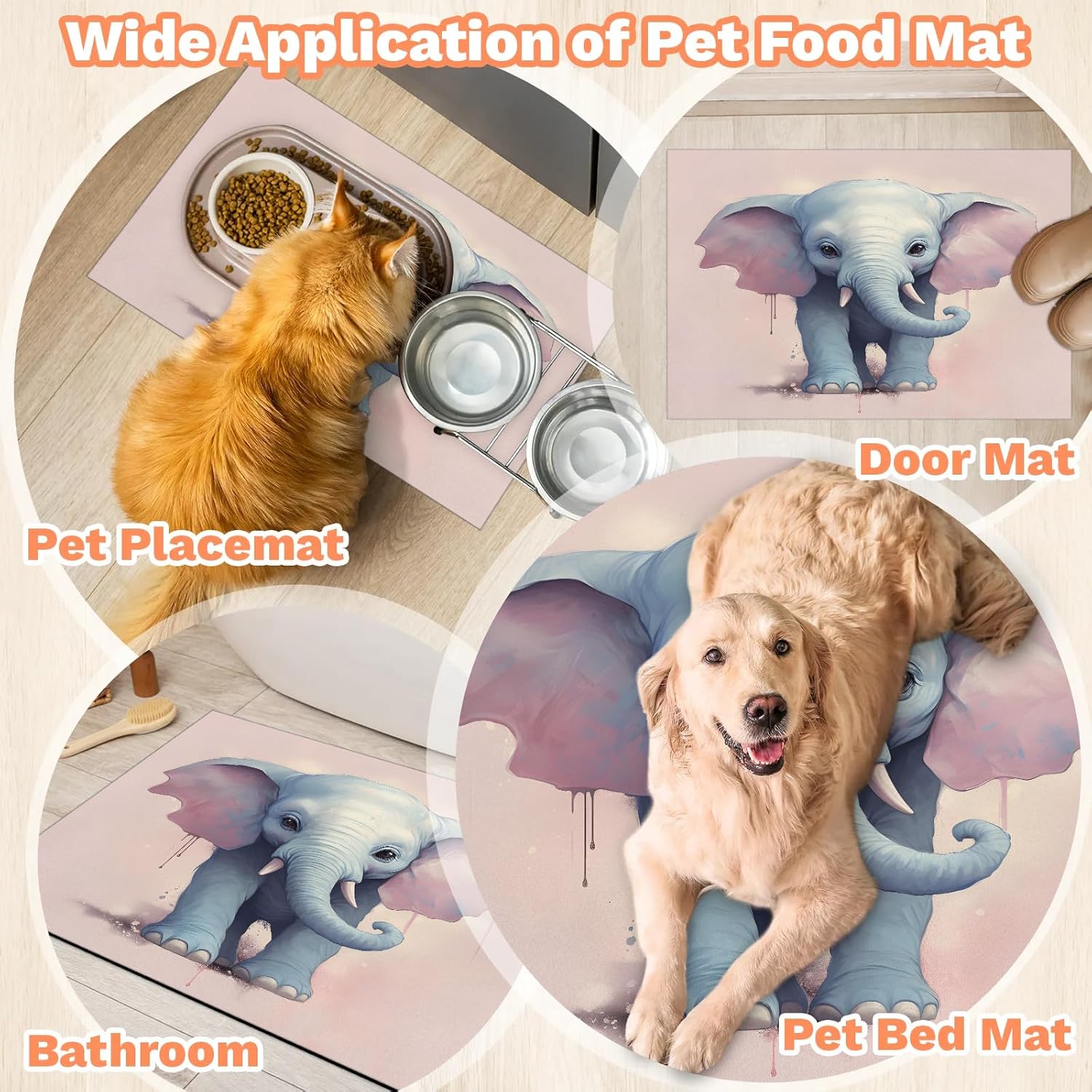 • MULTI FUNCTIONAL PLACE MAT: Dog bowl mat can be used as a pet place mat, door mat, pet sleeping mat, etc.Suitable for bedrooms, living rooms, dining rooms and other places