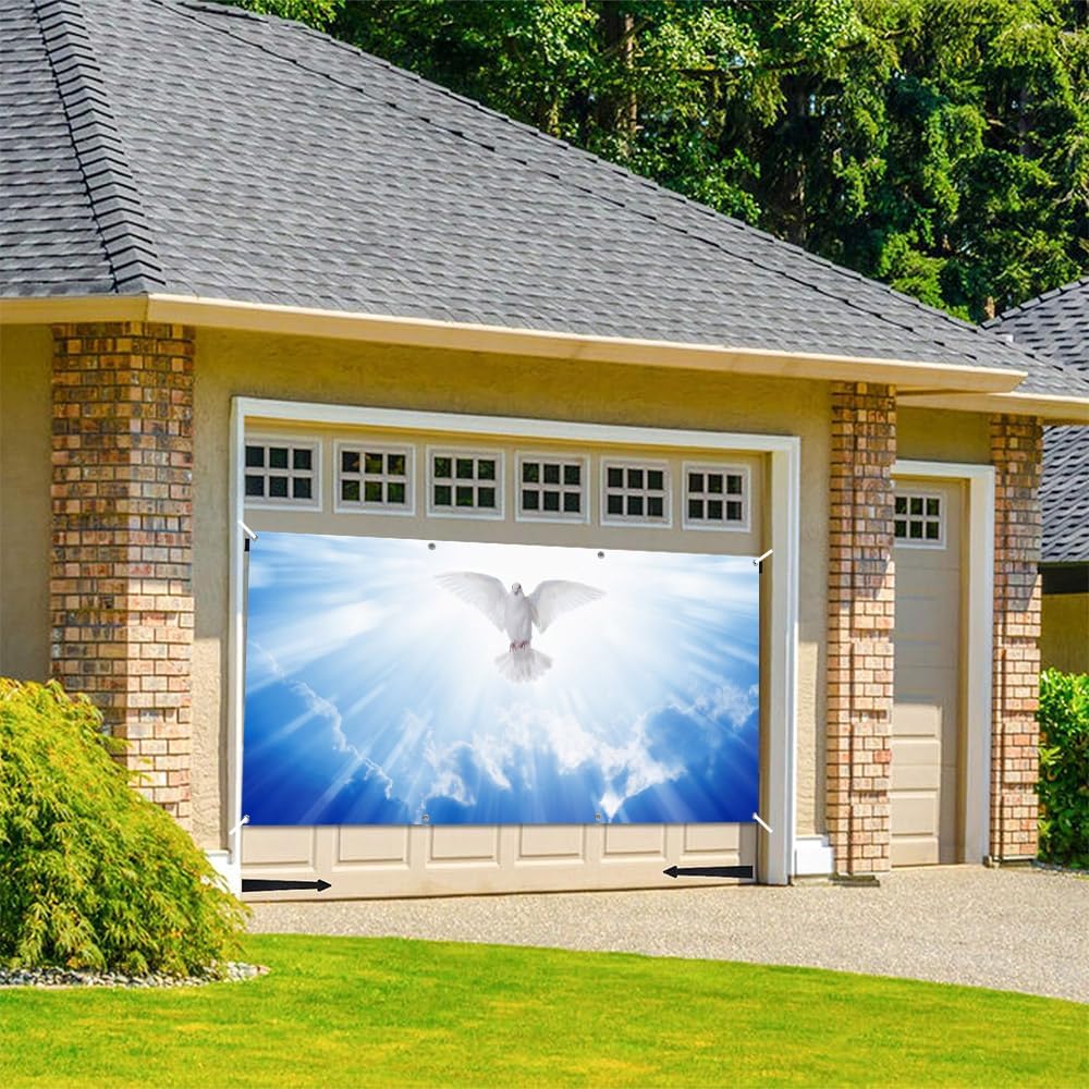 Leowefowa Garage Door Decorations BannerMaterial: 100% polyesterFeatures:1.Sturdy and durable, good color fastness, wrinkle resistant fabrics, vivid-color, not easy to fade, good artistic effect.2. Light Weight, foldable,easy to carry and store.Can be washed and ironed, makes it can be used for a very long time.3. Can offer size and picture customization services.Packing List: 1 pc garage door decoration banner with 2pcs of 20ft ropeWarm tips:1.Please understand every computer screen is different, therefore, colors may vary slightly.2.Please allow a slight size difference due to manul measurement.3.This garage door banner will come with slight crease due to folded shipping which is normal, but it won't influence your use, just wash it or iron it before use, the crease will be removed easily!4. Please wash it in cold water, no bleach, no tumble-dry.Your satisfactory is our only persue! Any questions about your order, please let us know freely, we will reply you in a very short time and offer you the best solution! Enjoy your shopping here and have a bright day!
