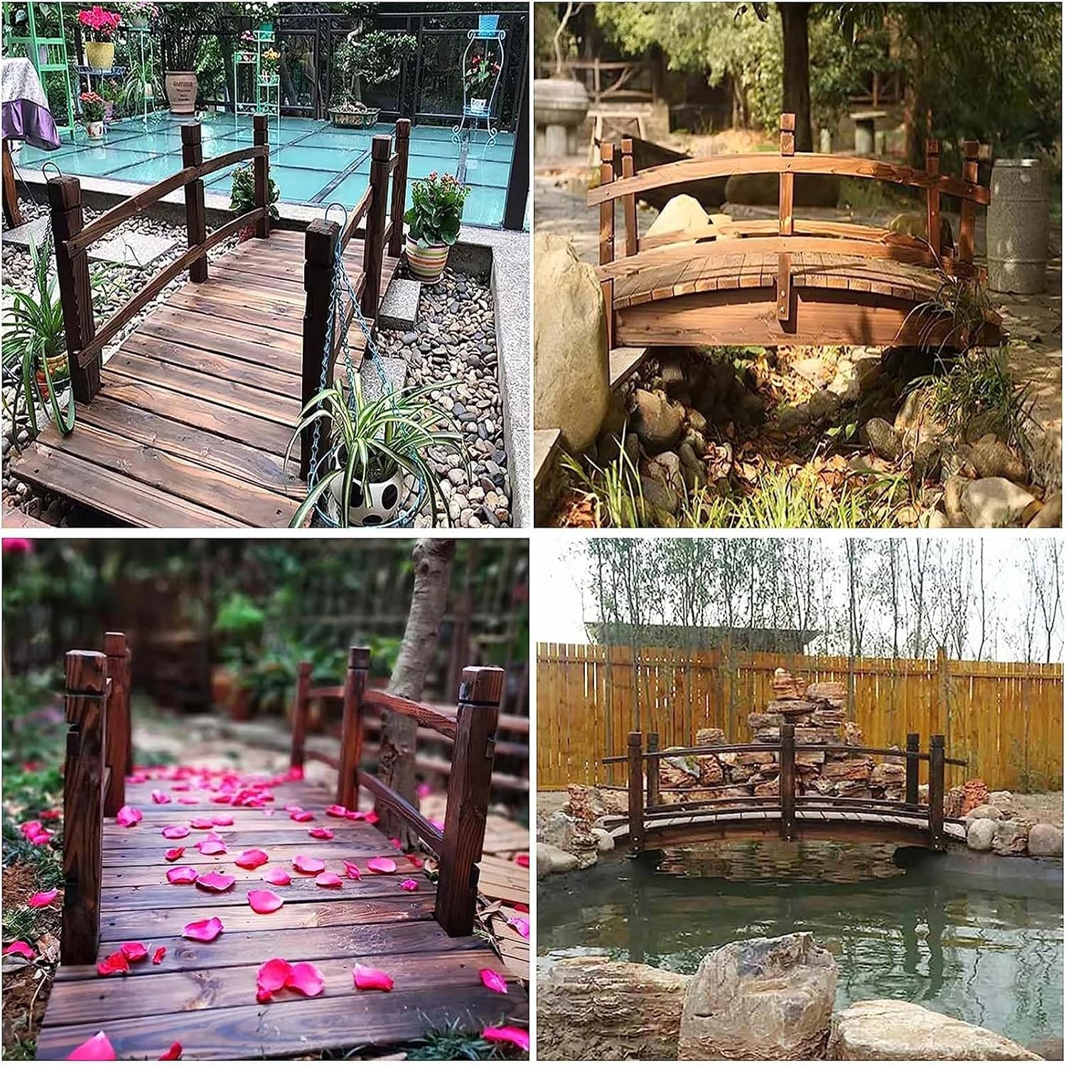 Description: Carbonized finished pine wood makes it a beautiful and rustic additional walkway to your garden, yard, creek or farm. Features: Natural wood with strong weather resistance and long service life. Carbonization treatment surface with rustic and old looking. Side railings adding aesthetics and safety. Arch design is strong and stable, so your family and pets can play on the bridge without any worries! Garden bridges connect decks, ponds, streams, etc. and serve as a bridge and transition to connect different spaces. A wondertul gift as alovely tront yard garden display. Fewer screws for easier assembly. Specification: Material: Solid Wood Strong Weight Capacity: 200KG/440LBS. Size: ▪ Bridge Plate Thick: 2cm/0.8inch ▪ Post Size: 7x7cm/2.7x2.7inch ▪ Railing Size: 2x7cm/0.8x2.7inch ▪ Weight: 15KG/33Lbs ▪ Overall Size: 140x60x52cm/55x23.6x20.5inch Package Includes: 1 x Garden Bridge Tips: Due to different batches and manual measurement, there may be slight error, thank you for your understanding. All the above pictures are displayed, and the different display effects may be different. Please refer to the actual product.