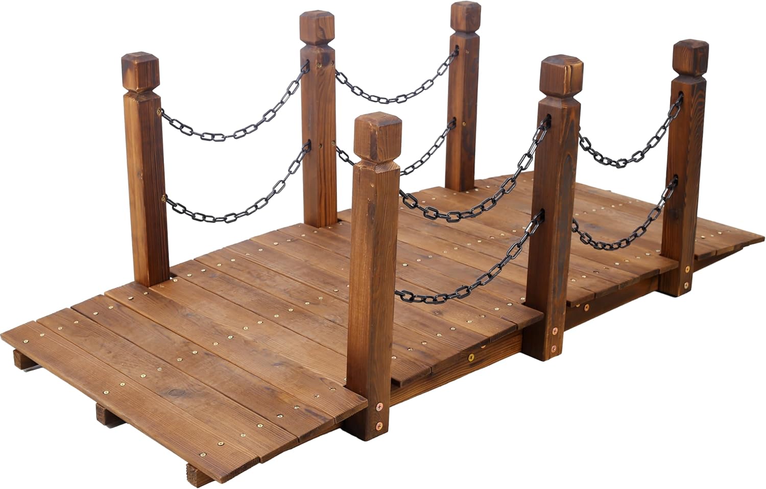 LifeSky 5 FT Wooden Garden Bridge brings rustic elegance to your outdoor space. This stained wood arc footbridge features reinforced construction with chain railings, designed specifically for backyard creeks and farm pond applications. Small Farm Owner's Solution As a small farm owner, you need reliable access across waterways while maintaining authentic country aesthetics. Our reinforced structure with thickened beams supports daily farm activities, providing safe passage for both people and equipment. Experience the confidence of having a durable crossing solution that enhances your property's functionality and charm. Weather-Resistant Construction Crafted from quality fir wood with protective waterproof finish, this bridge withstands seasonal changes without compromising its rustic appeal. The reinforced design resists cracking and splitting, ensuring long-lasting performance in various weather conditions. Enjoy years of reliable service with minimal maintenance required. Authentic Farm Experience Create memorable moments for family and guests with this classic arched design. The chain railings provide secure handholds while crossing, allowing everyone to fully appreciate your pond's natural beauty. This bridge becomes an integral part of your farm's landscape, enhancing those special evenings watching sunset over the water. Multi-Scene Versatility Perfect for various applications beyond pond crossings, this adaptable structure works beautifully over garden creeks, as a decorative pathway near your farmhouse, or as a charming accent through flower beds. The timeless design complements any outdoor setting while providing practical functionality. LifeSky Quality Assurance Engineered with six support pillars and rivet-reinforced decking for exceptional stability. Each component undergoes rigorous quality checks to meet the demands of active farm life. Trust in craftsmanship that balances rustic charm with practical reliability for your outdoor spaces. Specifications - Material: Quality Fir Wood - Color: Brown Stain Finish - Length: 5 Feet - Shape: Rectangular Arc Design - Features: Chain Railings, Reinforced Structure - Assembly Required: Yes (Hardware Included)