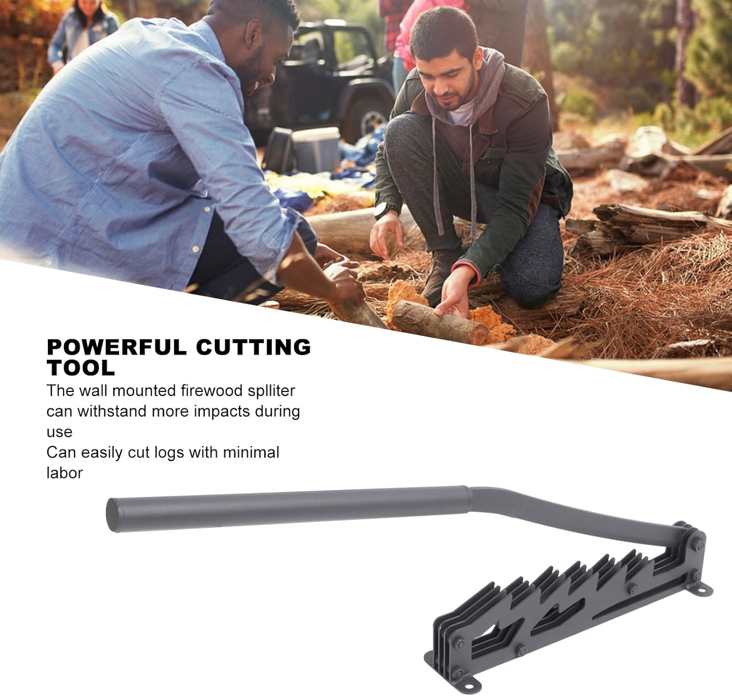 1. High Carbon Steel Material: The wood divider is made of carbon steel, the surface is treated, it is not easy to deformation and rust, and it is very durable. The product can be disassembled, more convenient to carry.2. Wall Mounted Splitter: Make your fire faster with this unique lever type wood splitter tool. Lift the post, place the log, then pull down the blade. Easily split logs without the need for an extra hammer or axe.3. Powerful Cutting Tool: Wall mounted wood splitter withstands more impact in use and can easily cut logs with minimal labor. Size design is easy to carry, suitable for outdoor camping, barbecue, picnic and so on.4. Safe also Stable: There are bolt holes in the base, so it can be fixed to a tree stump or other wooden stakes. This provides additional stability and height for more efficient wood splitting. It does not bend under high pressure and is very durable. It will not break during use and is very safe.5. Multiple Uses: The removable wood splitter tool is easy to carry and can be used indoors or outdoors. Campfires, camping, fireplaces, backyards, barbecues, picnics, cabins and caravanscan be used. You can easily carry it when you want to use it.Specification:Item Type: Wall Mounted Kindling SplitterWeight: 4250g/149.9ozSize: 57 x 10cm/22.4 x 4.7inExtended Handle Length: 40cm/15.7inMaterial: High carbon steelPackage List:1 x Wood Splitter 1 x Replace Handle 1 x Safety Ring4 x Screw 4 x Gasket