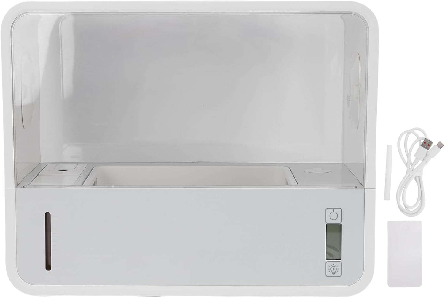 1. Smart Control System: The intelligent control system automatically detects temperature and humidity levels, creating a closed and comfortable environment that optimizes mushroom growth. 2. Humidity Maintenance: Equipped with a humidification function to ensure that the humidity inside the box remains at a suitable level, promoting mushroom growth. Equipped with an advanced system that effectively prevents spore dispersal, ensuring a bountiful harvest every time. 3. English Version Interface: Easy to operate and manage the growing box. This practical design allows you to easily grow mushrooms at home. With it, you can fully enjoy the fun of growing and harvesting mushrooms. 4. Multifunctional: Suitable for cultivating various types of mushrooms, such as shiitake mushrooms. It is a wise choice for home research, mushroom cultivation, or mushroom enthusiasts. 5. Automated Features: Time saving and effortless, suitable for both novice and experienced growers. Provides mushrooms with the right amount of humidity on a regular basis to ensure good growth and delicious taste. Well designed and made of ABS material, it is reusable, has a long service life, and provides you with a better user experience. Specification: Item Type: Mushroom Growing Tent Material: ABS Weight: Approx. 2560g / 90.3oz packing list: 1 x Mushroom Growing Tent 2 x Accessory 1 x USB Data Cable 1 x English Manual Note: Place the mushroom box in a stable and safe indoor environment to prevent the box from tipping over.