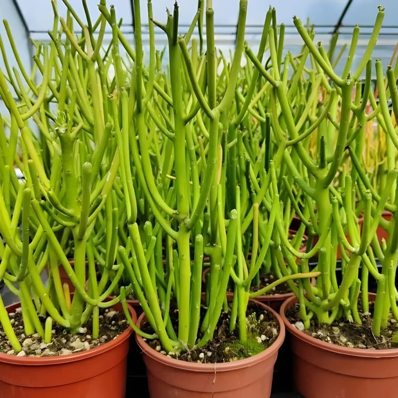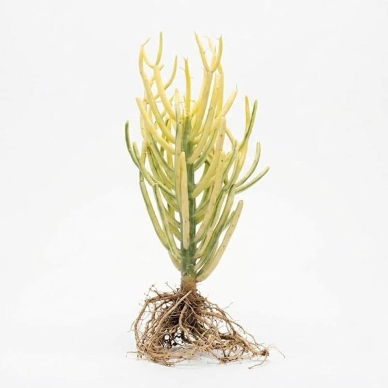 Elevate your interior aesthetics with the bold and structural Variegated Pencil Cactus. This live succulent is a standout choice for anyone looking to add a touch of professional styling to their home or workspace. Characterized by its slender, upright stems and lack of traditional leaves, it offers a clean, avant-garde look that complements any high-end decor. A Sculptural Masterpiece for Your Space The Pencil Cactus is more than just a plant; it is a piece of living art. Its fascinating branch patterns and smooth textures create a sophisticated focal point on bookshelves, side tables, or windowsills. The variegated tones provide a subtle yet captivating contrast, ensuring this specimen remains a conversation starter in any room. Effortless Integration into Busy Lifestyles We recognize that your time is valuable. This succulent is the ultimate "set and forget" greenery. It is remarkably sturdy and thrives on neglect, making it perfect for office settings or for individuals who travel frequently. Its ability to maintain its vibrant appearance with infrequent watering ensures your space remains stylish year-round without the need for constant maintenance. Tailored to Your Creative Vision Delivered as a bare root specimen, this Pencil Plant allows you to take full control of its presentation. You can select a pot that perfectly matches your furniture or use it as a focal point in a larger succulent arrangement. This flexibility makes it an excellent choice for DIY enthusiasts and interior decorators looking to create a specific atmosphere. Quality Selection for Lasting Beauty Each Pencil Cactus is hand-selected for its structural integrity and color quality. Because these are live specimens, each plant possesses its own individual growth habit and branching style, ensuring your purchase is truly one-of-a-kind. It makes an exceptional gift for housewarmings, professional milestones, or as a chic addition to your own personal plant gallery.