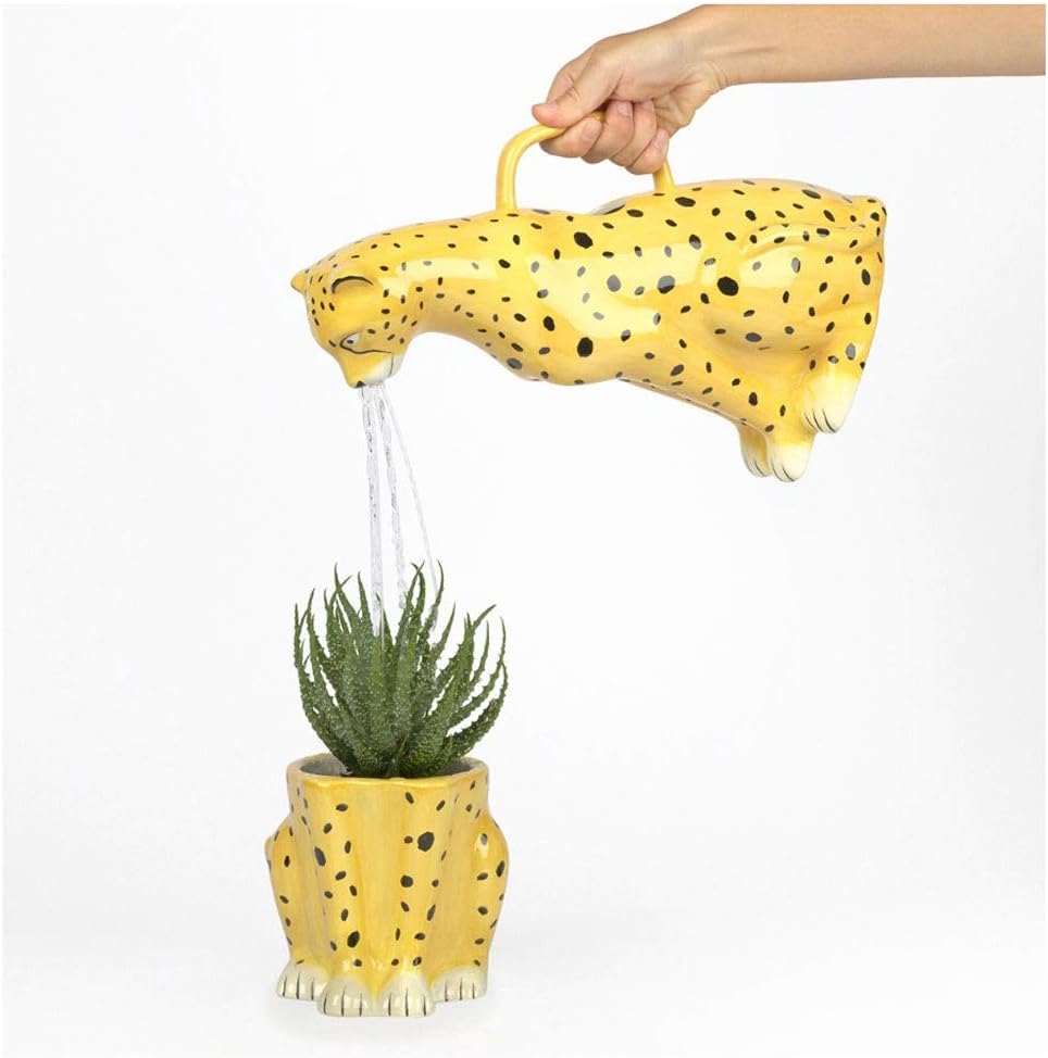 Use a watering can to make the leaves of the plants brighter and greener. * Product name: watering can + flower pot * Material: Ceramic * watering can weight: about 1kg/1000g * Capacity: 3L * Size: Flower pot: 13.5x15x15 cm (LxWxH), Watering can 12x18x32cm (LxWxH) * Color: Leopard, Black Panther * Type: one piece/one set * Scope of application: watering flowers, watering, stage props, decorations >Please check the color and style before buying. >If you have any questions, please feel free to contact us by email,we will respond to you as soon as we receive your email. The watering can spreads the water evenly and allows the plants to absorb the water well.