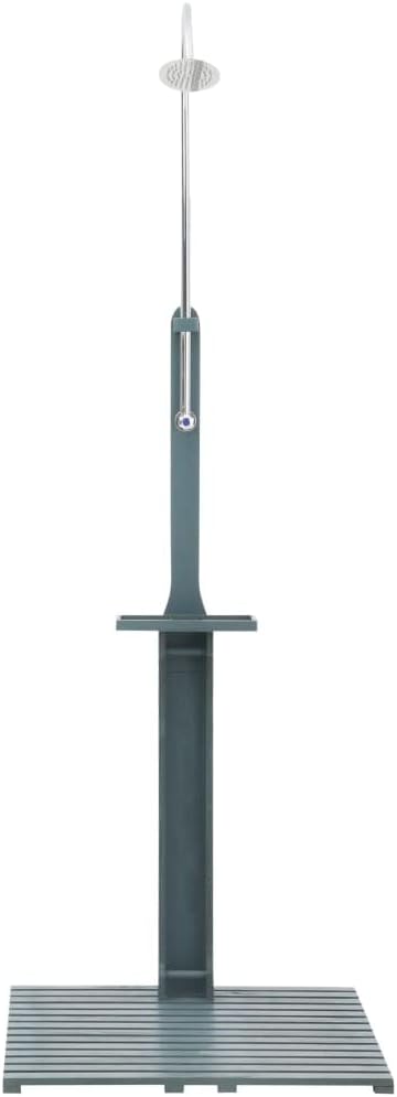 This wooden garden shower is made of hardwood and fir wood, both of which are characterized by absolute weather resistance and durability.Being able to withstand sunlight, rain and frost, the wooden garden shower is ideal to provide cool refreshment in backyard, camping or after outdoor swimming.A rotatable shower nozzle and an adjustable level for water pressure are designed for more convenient use. Details:◆Color: Anthracite◆Material: Hardwood + fir wood◆Product dimensions: 29.5" x 29.5" x 87" (W x D x H)◆Iron tube diameter: 0.9"◆Inner dia. of water inlet:0.4"◆Out dia. of water inlet: 0.5"◆The nozzle distance to the floor: 78"◆The box to the distance of the floor: 31.5"◆Box dimensions: 11.8" x 4.7" x 1.2" (L x W x H)◆Chassis board size: 29.5" x 29.5" (L x W)◆Lath thickness: 0.6"◆Rotatable shower nozzle◆Adjustable level for water pressure