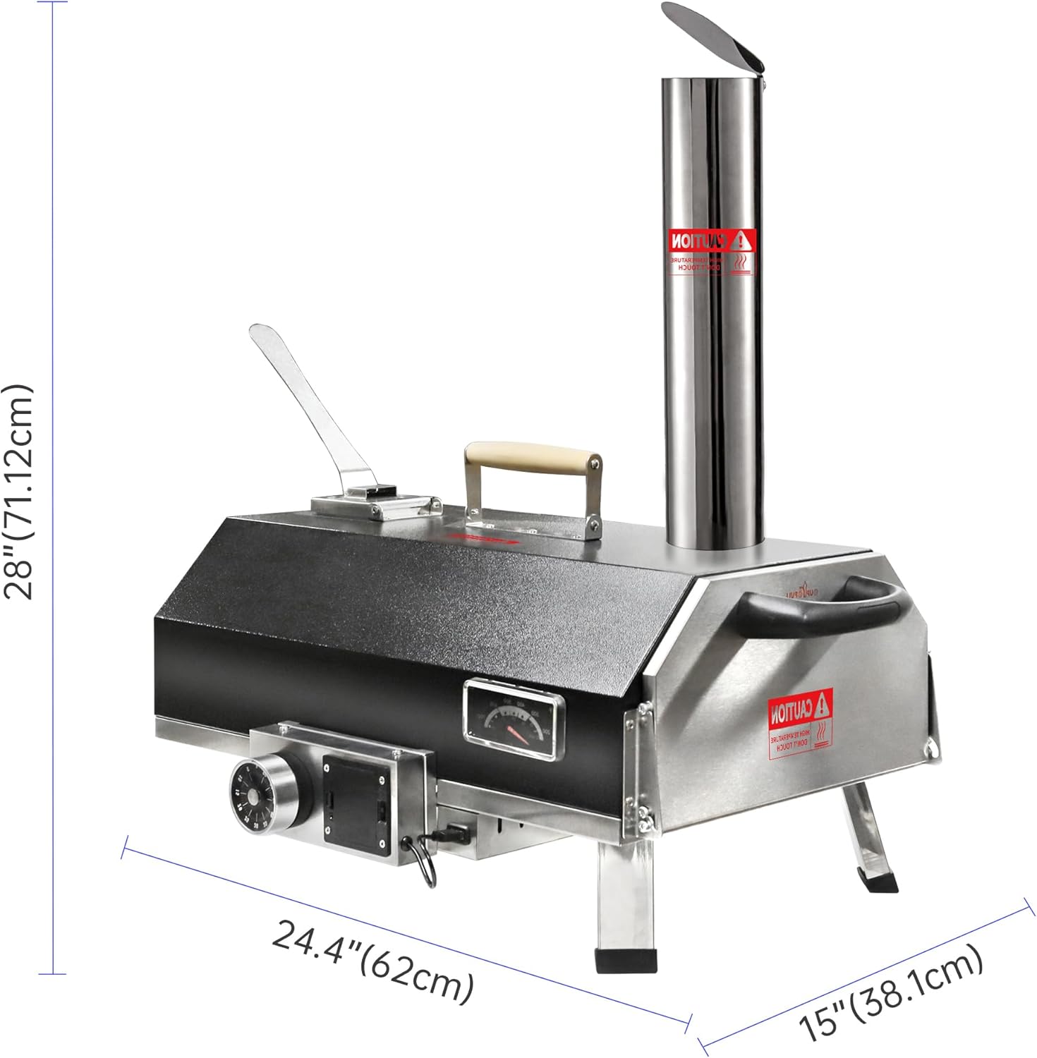Black 12 Wood Fired Outdoor Pizza Oven Portable Hard Wood Pellet Pizza Oven Ideal for Any Outdoor Kitchen Outdoor Cooking Pizza Maker Backyard Pizza Ovens Countertop Pizza Oven