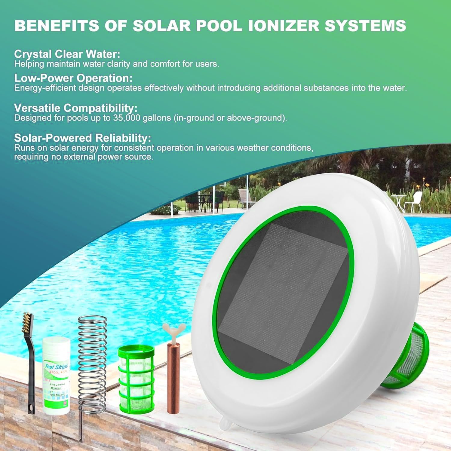 UIRWAY Solar Pool Ionizer for Above Ground & Inground Pools, Floating Solar Copper Pool Ionizer for Pools up to 35,000 Gallons, White