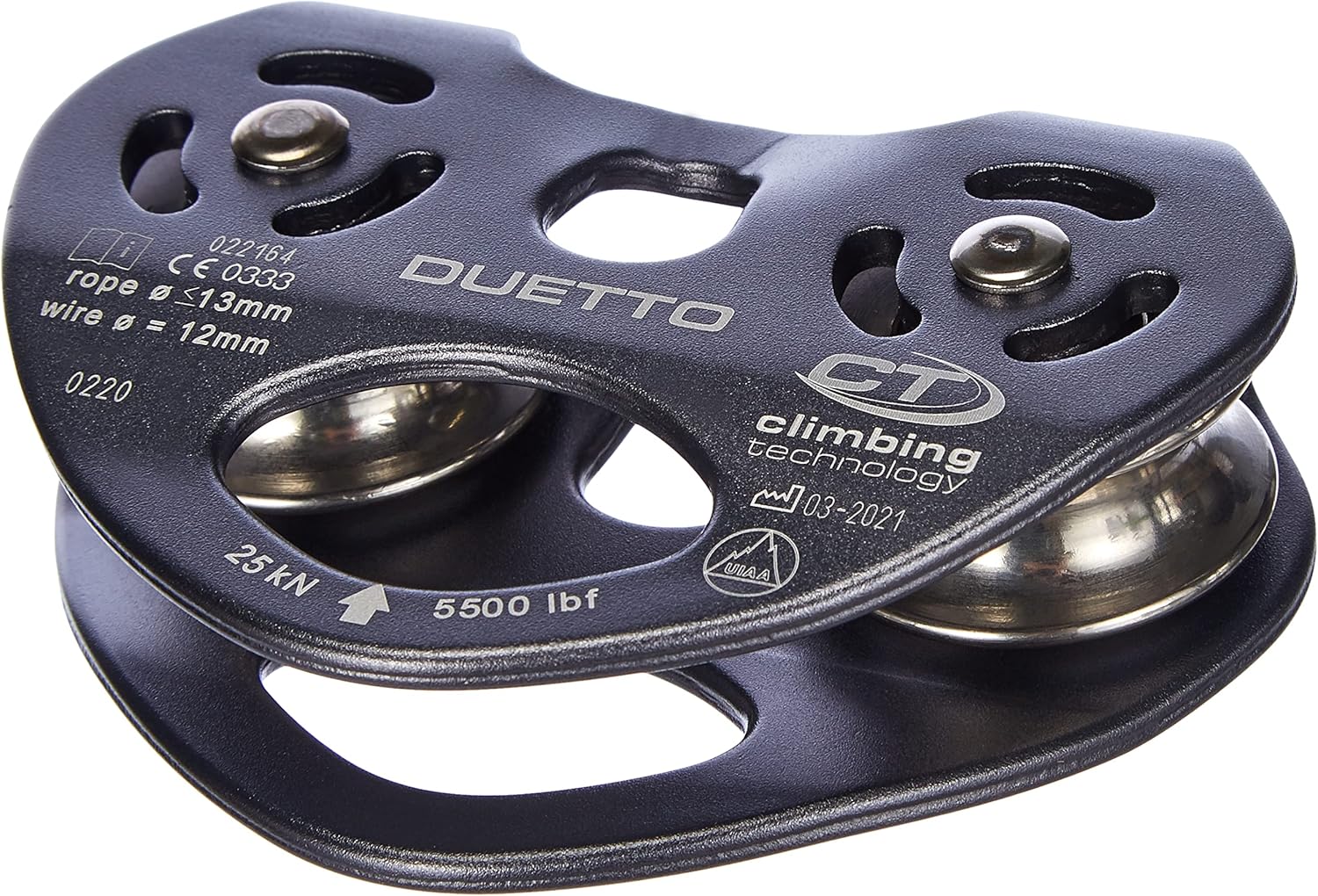 Climbing accessories:Type: rope pulleyMaterial: AluminiumWeight: 290 gDimensions: 100 x 80 cmAdditional Information:assembled pulleys with 4 ball bearingsrope diameter 13 mm and metallic rope diameter 12 mmbreaking load 25 kNstandard EN 12278:2007UIAA label