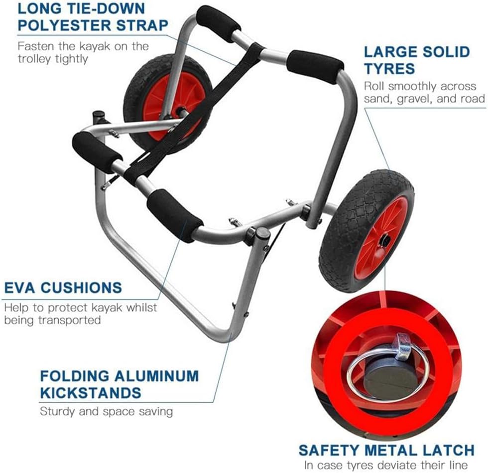 Specification: Name: Kayak Canoe Trolley Material: Aluminum alloy tube + foam roller Aluminum tube diameter: 22 mm Aluminum tube wall thickness: 1.5 mm Tire diameter: 25 cm Tire thickness: 7 cm Product dimensions: 66 x 44 x 40 cm Packaging dimensions: 80 x 38 x 9 cm Gross weight/net weight: 2800/2300g Rated voltage (appliances or chargers): AC110-240/50HZ;
