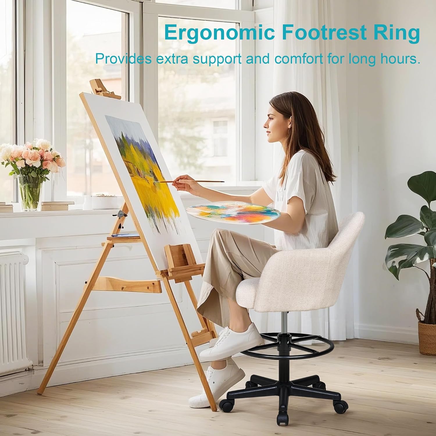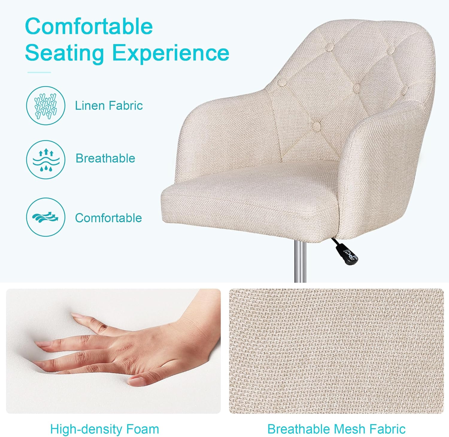 | Item Type Name | Height Adjustable, Swivel Rolling Wheels, for Drawing/Standing Desk/Office, Linen Fabric, Beige |