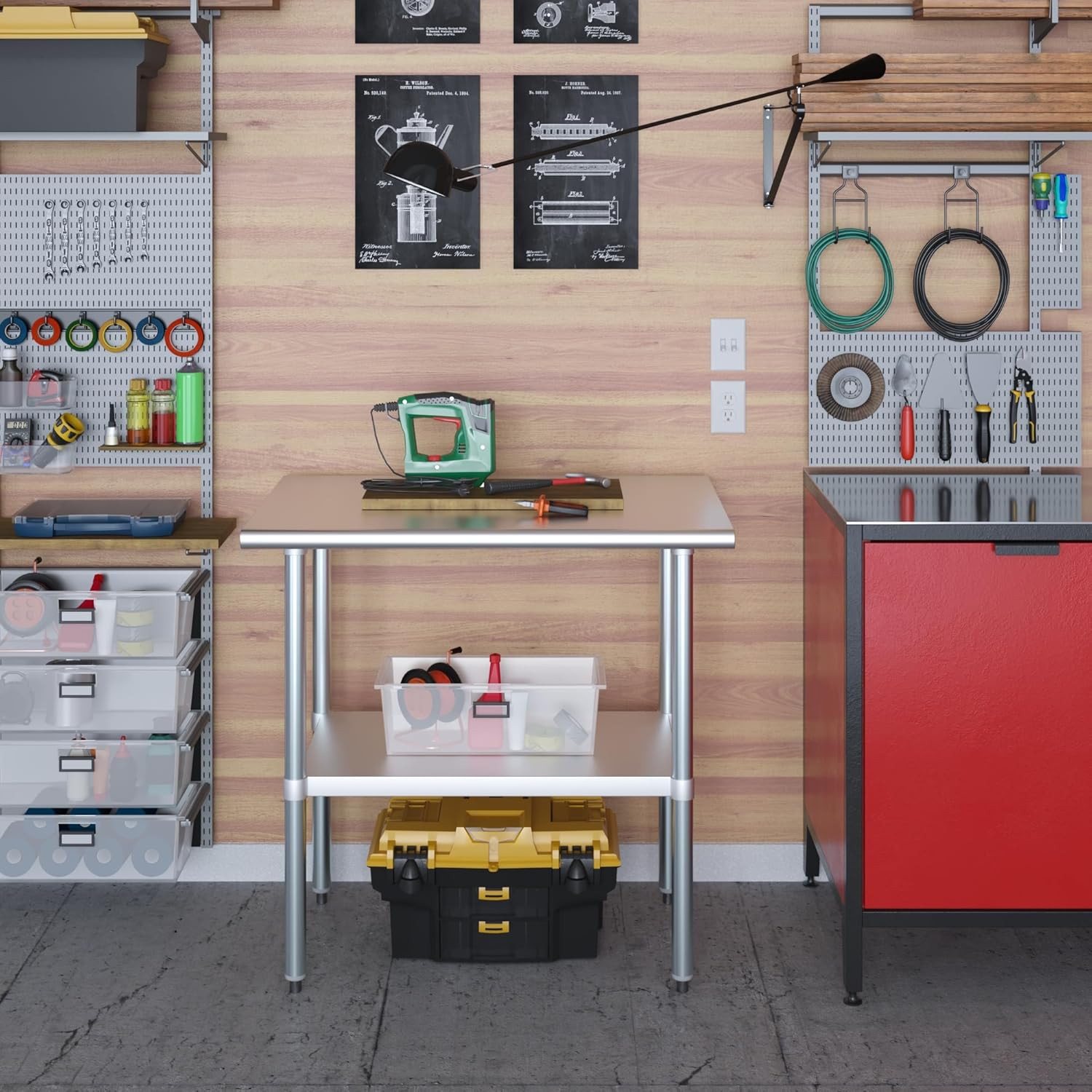 AmGood 24 in. deep x 36 in. long x 35 in. high stainless steel table This Stainless Work Table has a weight capacity of 560 Lbs , evenly distributed. The bottom shelf has a capacity of 415 Lbs, evenly distributed.AmGood Stainless Steel Utility Work Table is a great addition to any home or business. It serves perfectly for a variety of tasks, such as functioning as a workbench, prep table, or general-purpose utility table. Moreover, the included bottom shelf offers additional storage space. Some assembly is required.The table is made with 18 gauge corrosion resistant 430 stainless steel top and galvanized legs and bottom shelf. It's built to withstand heavy use and everyday wear and tear. Whether you need a sturdy workspace for your next DIY project or simply want an extra prep area in the kitchen, this utility table has you covered.NSF certified to meet the strictest standards for public health protection. The industrial-quality manufacturing process meets the highest regulatory requirements for construction, safety, and durability.Common Applications:⦁ Food Prep Table For Commercial Kitchen⦁ Kitchen Island⦁ Counter Extension⦁ Utility Bench for Shop⦁ Professional Work Station⦁ Garage Work Bench⦁ Laundry Clothes Folding Table⦁ Brewing Setup ⦁ Exam Table For Veterinarians ⦁ Butcher ShopProduct Specifications:Stainless steel work table surface has curved edges for safety and comfort. It incorporates a heavy duty adjustable galvanized bottom shelf and leveling feet.⦁ 18 Gauge 430 Stainless Steel Top⦁ Galvanized Adjustable bottom shelf⦁ Adjustable feet to compensate for uneven floor⦁ Adjustable under shelf-great for storage⦁ Height: 35 in.⦁ NSF Certified⦁ Sturdy & easy to setup⦁ Heavy DutyAssemble and install with no effort. No additional tool or kit needed. Assembly instructions and everything you need is included. Ships knocked down.