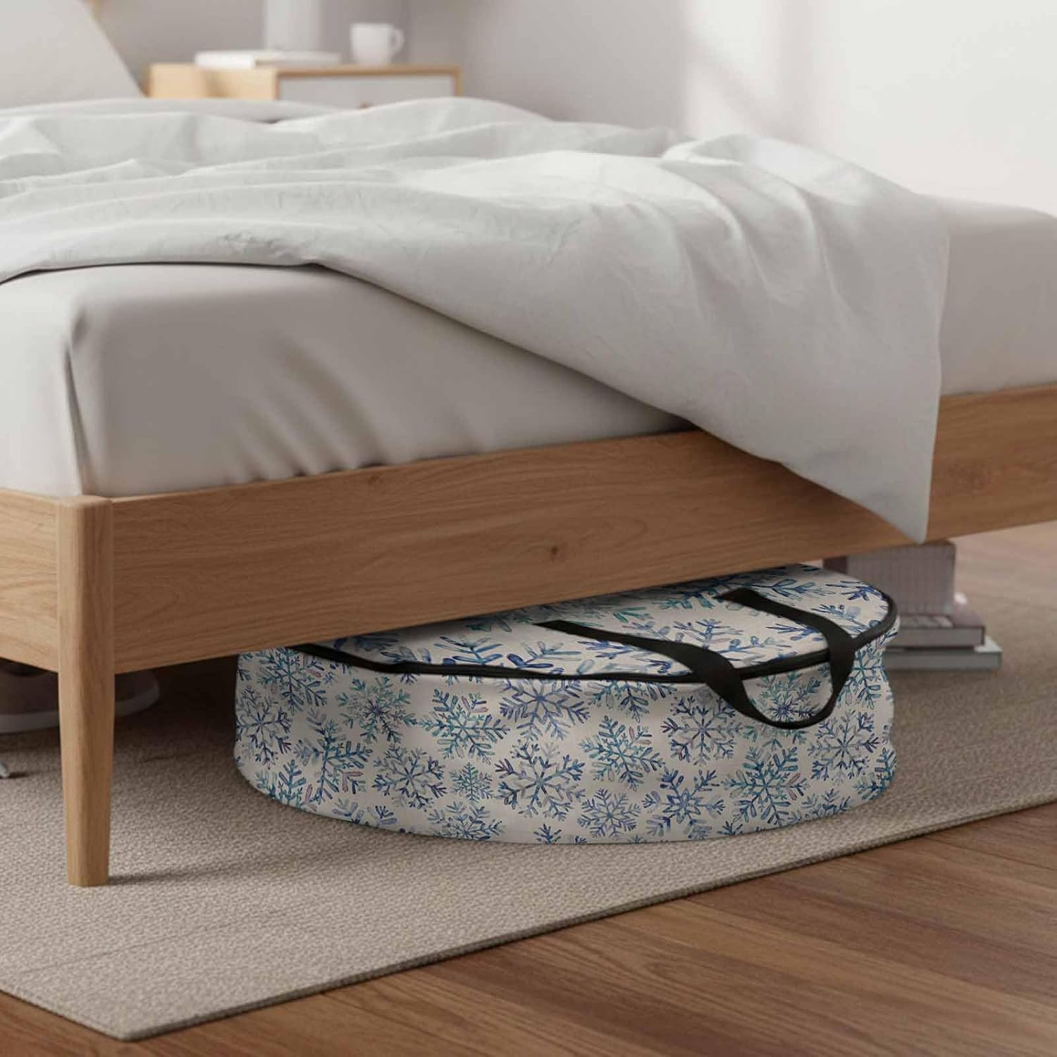 • VERSATILE STORAGE: Help your home organization with this versatile circular storage bag, specifically engineered to accommodate a wide variety of household items. From comforter and blanket to seasonal clothing and pillows, this bag keeps everything organized. It is also an ideal solution for protecting Christmas wreaths and decorations