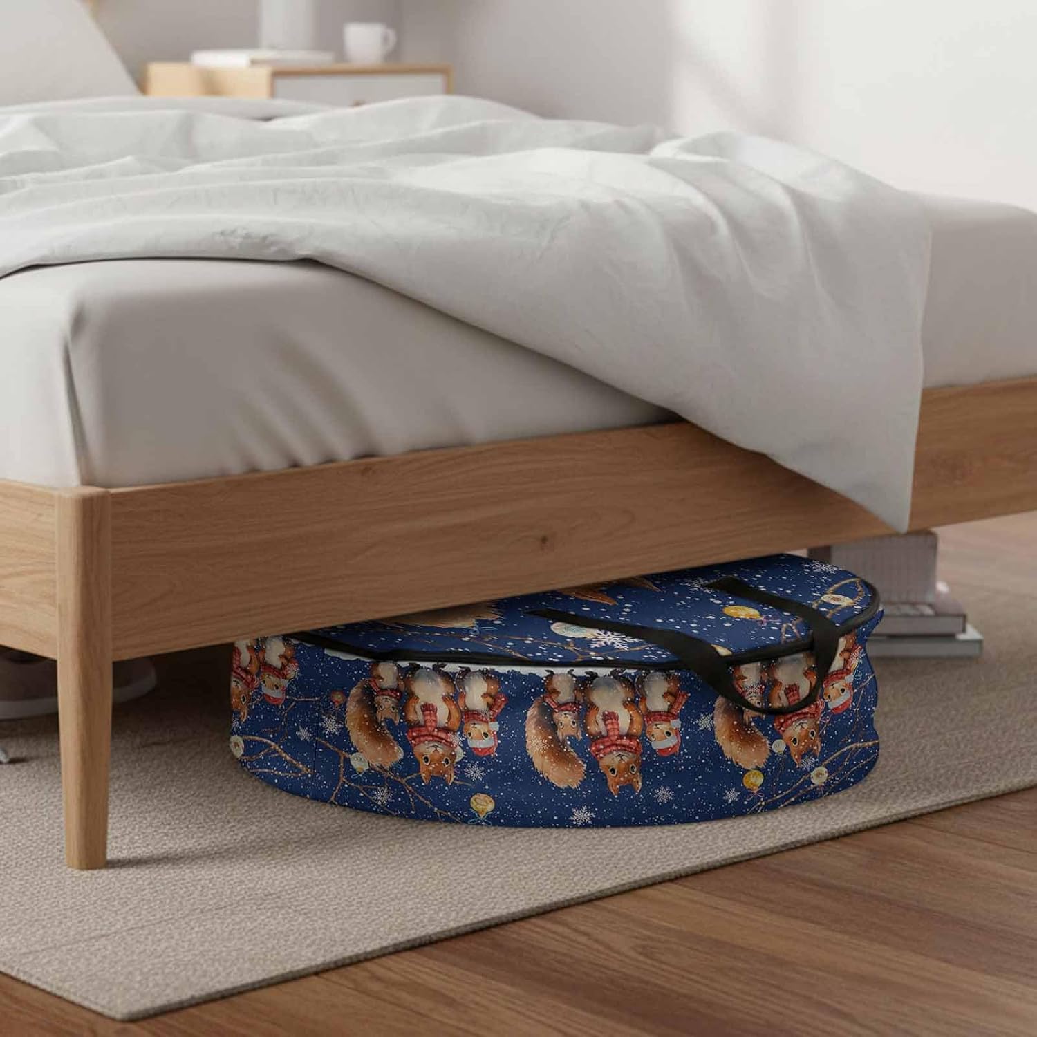 Reclaim Your Closet Space with the Round Storage Solution! Material: polyester Diameters: 24 inch, 30 inch, 36 inch Depth: 7 inches Package Includes: Round Storage Bag One Bag, Endless Possibilities: Whether you are swapping out your summer wardrobe, moving into a new dorm, or packing away holiday decorations, this bag has you covered. The circular design is uniquely suited for: Bedding: Comforters, quilts, sheet sets, and oversized pillows. Clothing: Winter coats, sweaters, and bulky ski gear. Home Decor: Holiday wreaths, garlands, and floral arrangements. Outdoor Gear: Camping blankets, sleeping bags, and beach towels. Dual Zippers: The high quality double zipper design allows the closet organizer to open wide from both sides, making it effortless to load and unload even the bulkiest comforters or wreaths. Reinforced Handles: Sturdy, reinforced handles are securely stitched to provide extra strength and a comfortable grip when carrying heavy loads or pulling the bag from under a bed. Clear Label Pocket: A transparent built-in label holder allows you to quickly identify the contents of each bag without ever having to unzip it, keeping your storage perfectly organized.