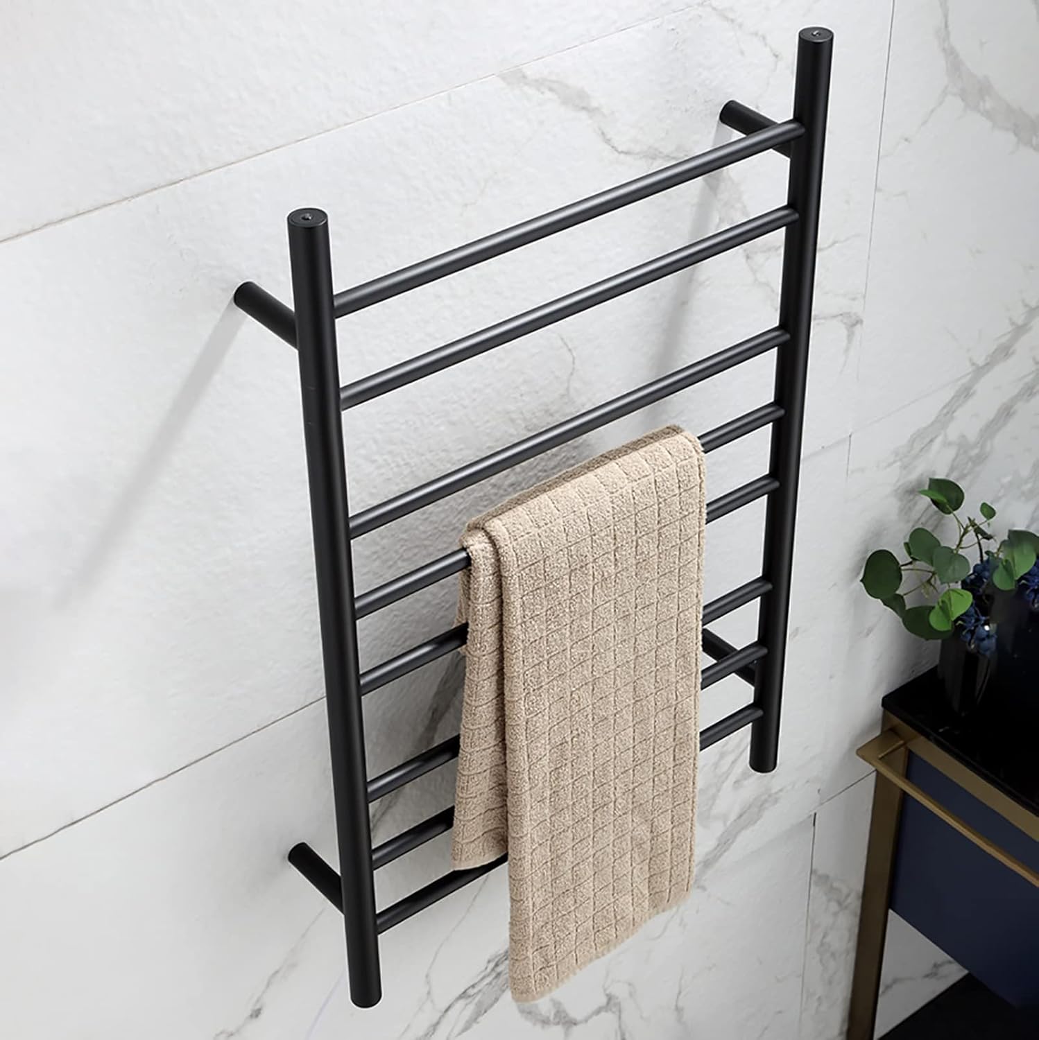 ● This electric towel warmer is an ideal solution to have, dry your towels or cloths quickly and easily. Ideal for using in the bathrooms to heat and dry your clothes Specification: Product Name: Electric towel warmer Color: Black Style: Contemporary Material: 304 stainless steel Installation Type: Plug In/ Hardwired Main Functions: Dry, constant temperature, , high temperature resistant Voltage: Power: 88W Frequency: 50HZ Heating Time: 5 minutes Working Temperature: 45°C+5 Rating: IP56 Product Size: 520*600*125 mm Heated Towel Bars Offer These Benefits: ● They dry towels more rapidly, keeping them fresher. ● They provide a soft ambient warmth in your bathroom. ● Gently dry delicate clothing and swimwear. ● Accelerate drying of wet outerwear, such as coats and gloves–making towel warmers worth considering for mud rooms and laundry rooms. ● Warm Tips: ★ Since the size is measured manually, there is a certain error. Please refer to the actual product. ★ The project may be slightly different from the picture due to lighting and display. ★ Towels and others are not included