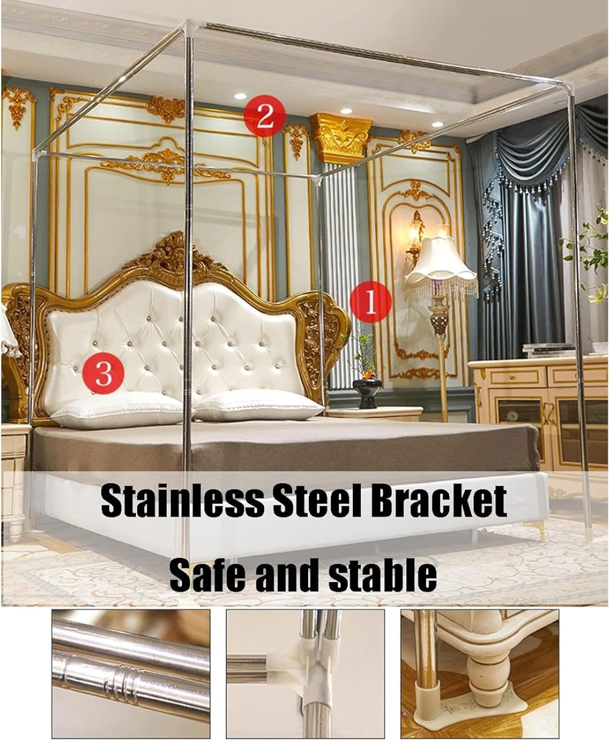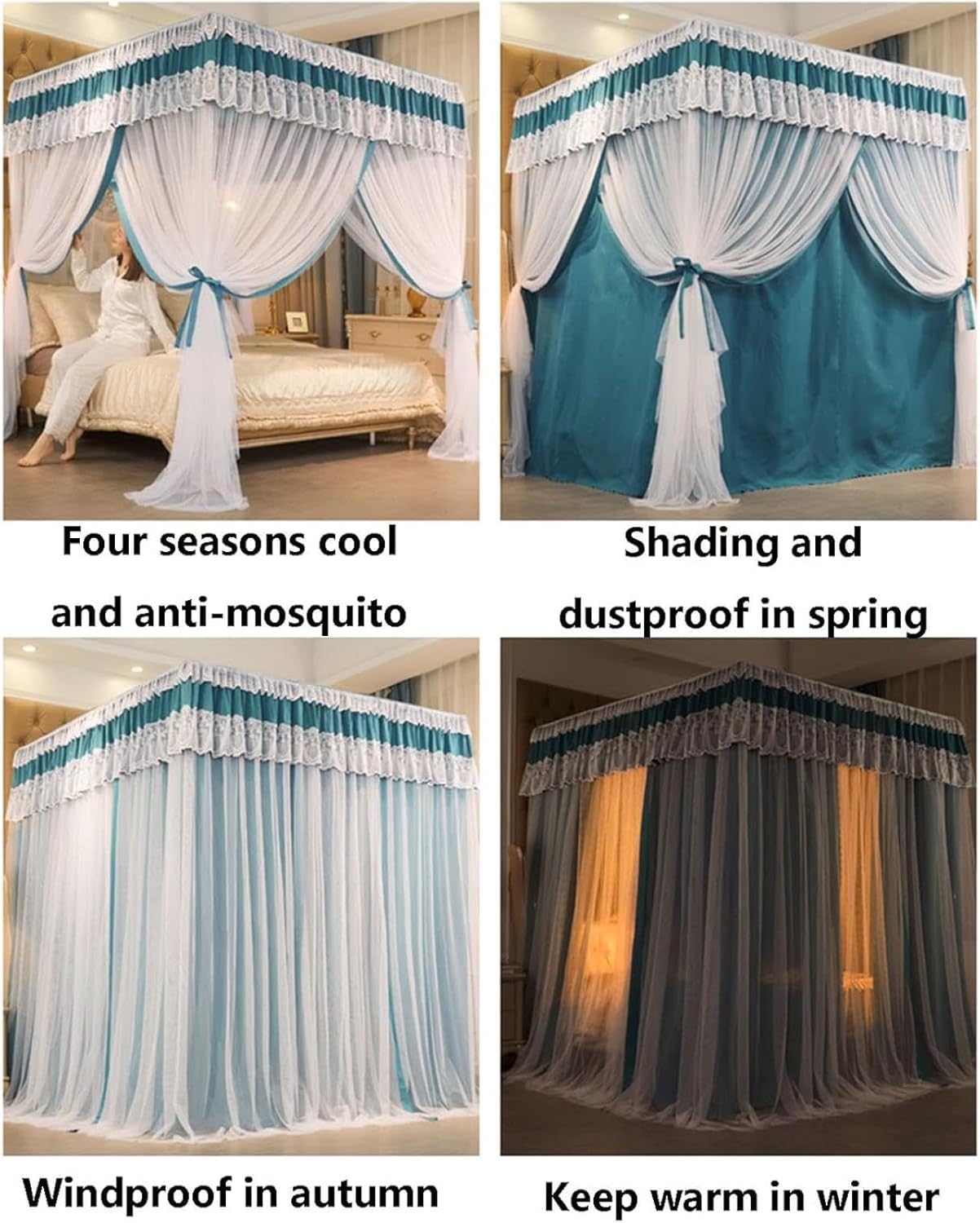 Features Effective Protection: Encrypted mesh blocks mosquitoes, filters dust, and helps resist winter chill. Convenient Design: Three-door layout allows easy access from any side. Stable Frame: Reinforced stainless steel bracket ensures long-term stability. Privacy Shielding: Shading design offers personal space whenever needed. Easy Maintenance: Machine washable for simple and regular cleaning. Product Information Product Name: 4 Poster Bed Canopy, Mosquito Net, Bed Curtains Canopy Material: Encrypted mesh with stainless steel frame Package Includes 1 x Bed Curtain 1 x Bold Stainless Steel Bracket